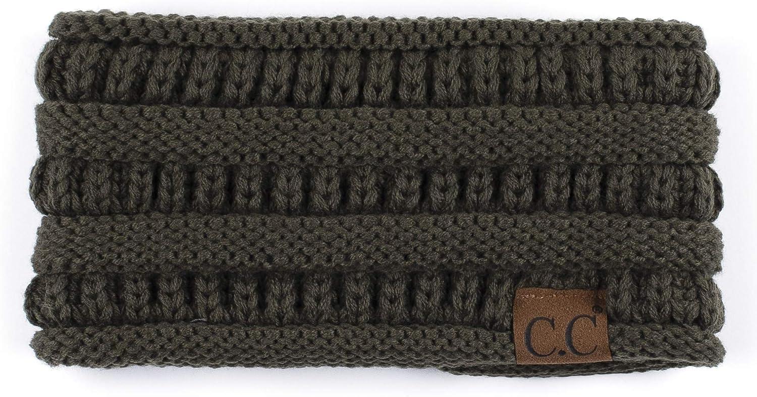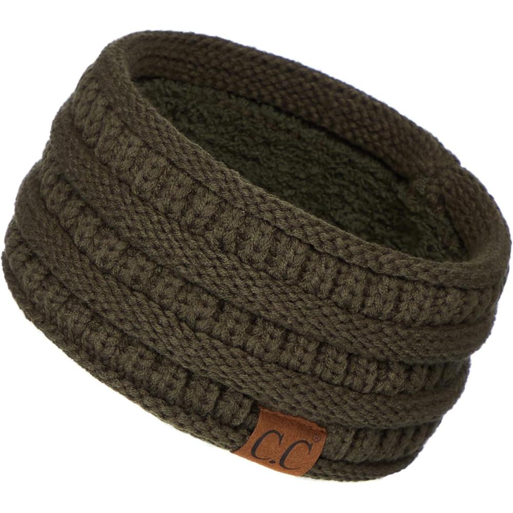 C.C Winter Fuzzy Fleece Lined Thick Knitted Diagonal Stripes Criss-Cross Pattern Headband Headwrap (HW-2060)(a Ribbed-New Olive)
