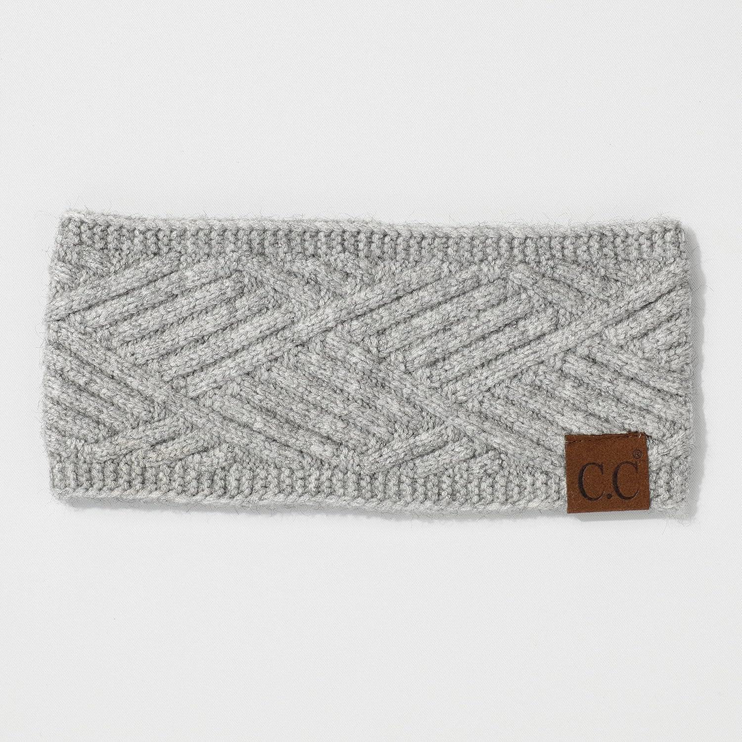 C.C Winter Fuzzy Fleece Lined Thick Knitted Diagonal Stripes Criss-Cross Pattern Headband Headwrap (HW-2060)(A Snuggly Soft Yarm - Lt. Grey)