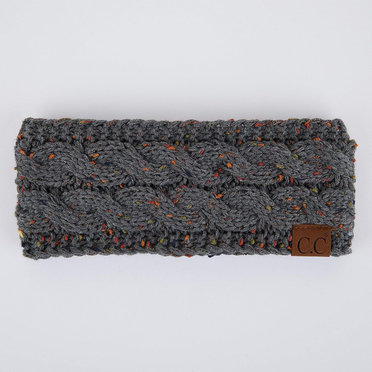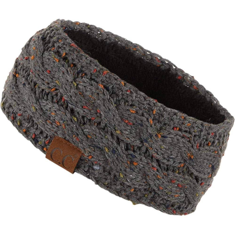 C.C Winter Fuzzy Fleece Lined Thick Knitted Diagonal Stripes Criss-Cross Pattern Headband Headwrap (HW-2060)(Dk. Mel Grey-confetti)