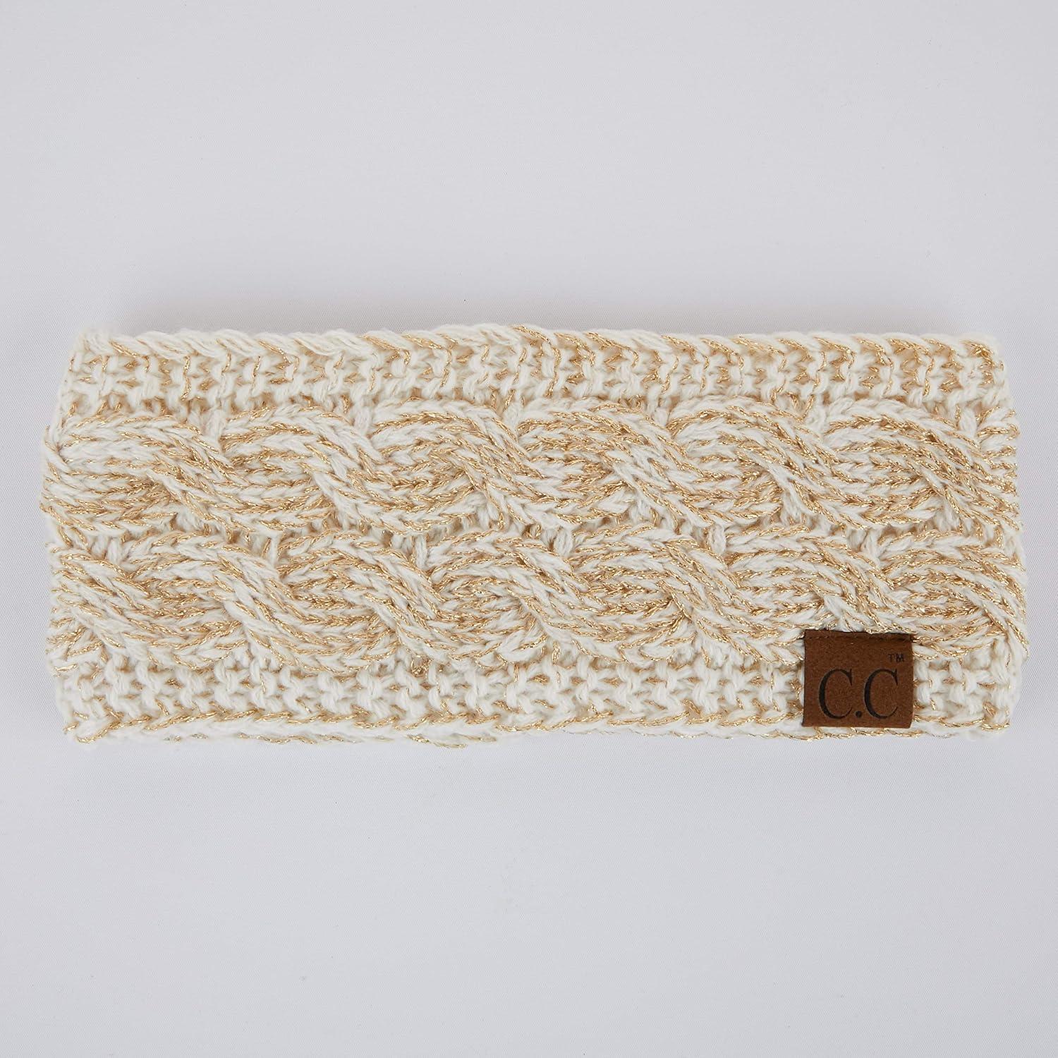 Get the C.C Winter Fuzzy Fleece Lined Thick Knitted Diagonal Stripes Criss-Cross Pattern Headband Headwrap (HW-2060)(Ivory/Gold) you want at a discounted price during our markdown sale event.