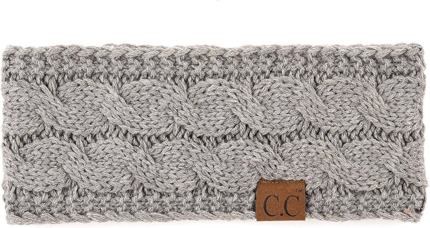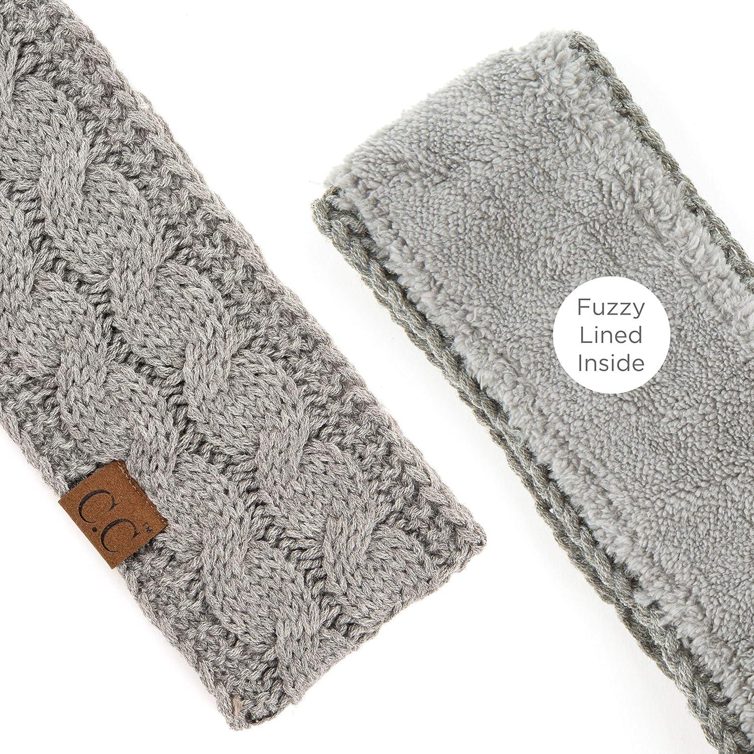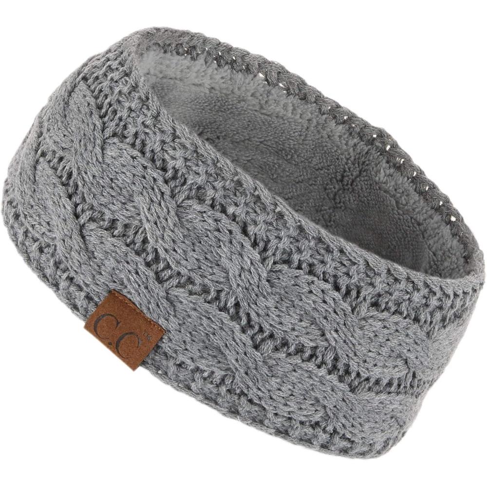 C.C Winter Fuzzy Fleece Lined Thick Knitted Diagonal Stripes Criss-Cross Pattern Headband Headwrap (HW-2060)(Lt. Mel Grey)