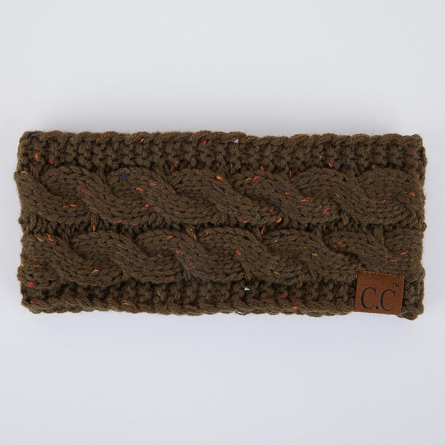 C.C Winter Fuzzy Fleece Lined Thick Knitted Diagonal Stripes Criss-Cross Pattern Headband Headwrap (HW-2060)(New Olive-confetti)