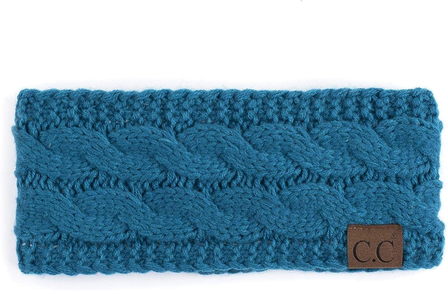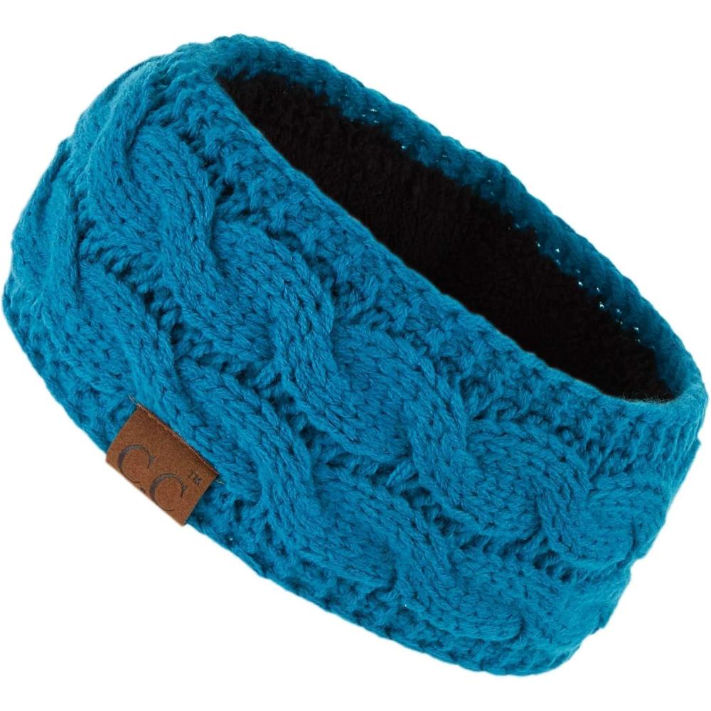 C.C Winter Fuzzy Fleece Lined Thick Knitted Diagonal Stripes Criss-Cross Pattern Headband Headwrap (HW-2060)(Teal)