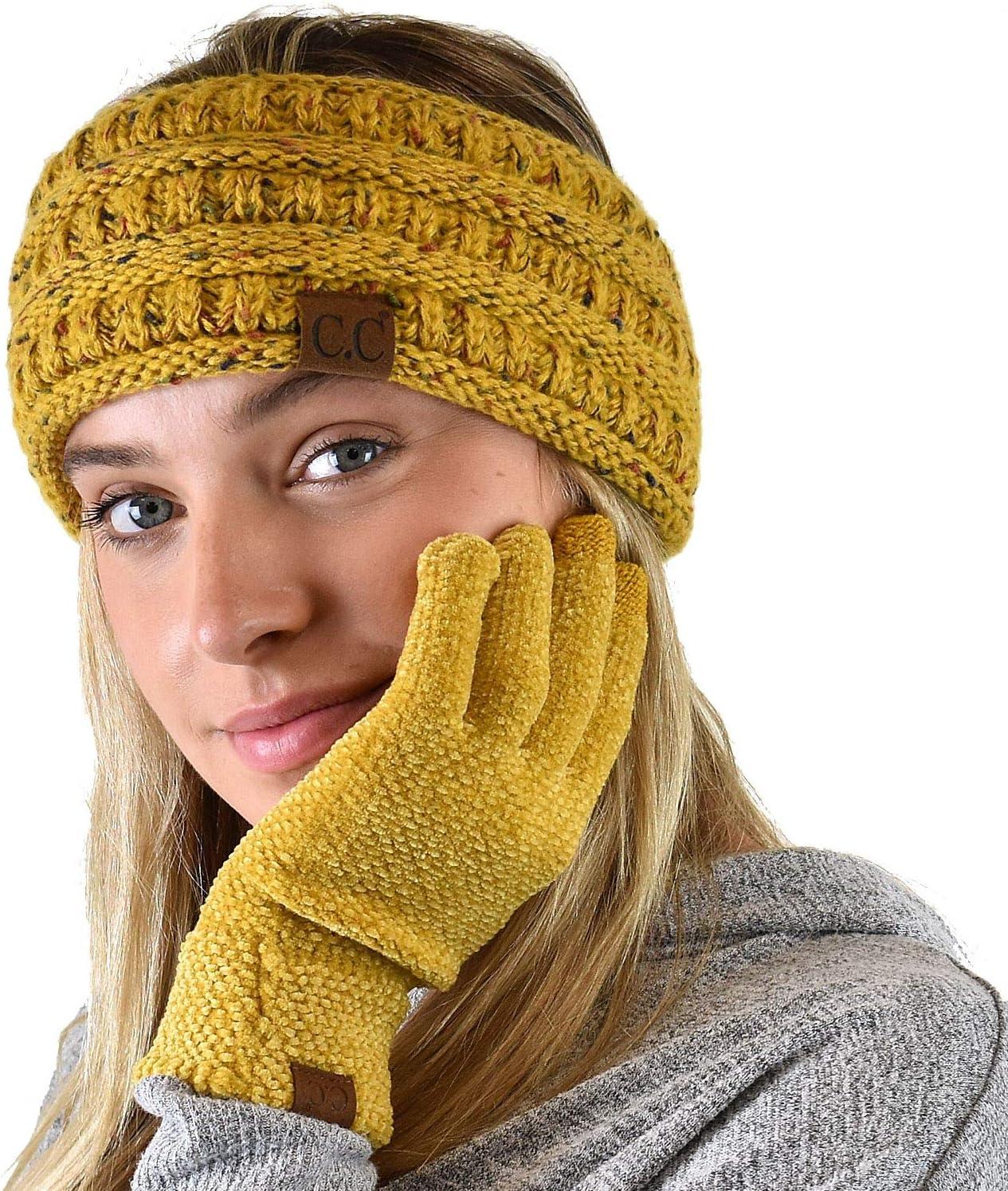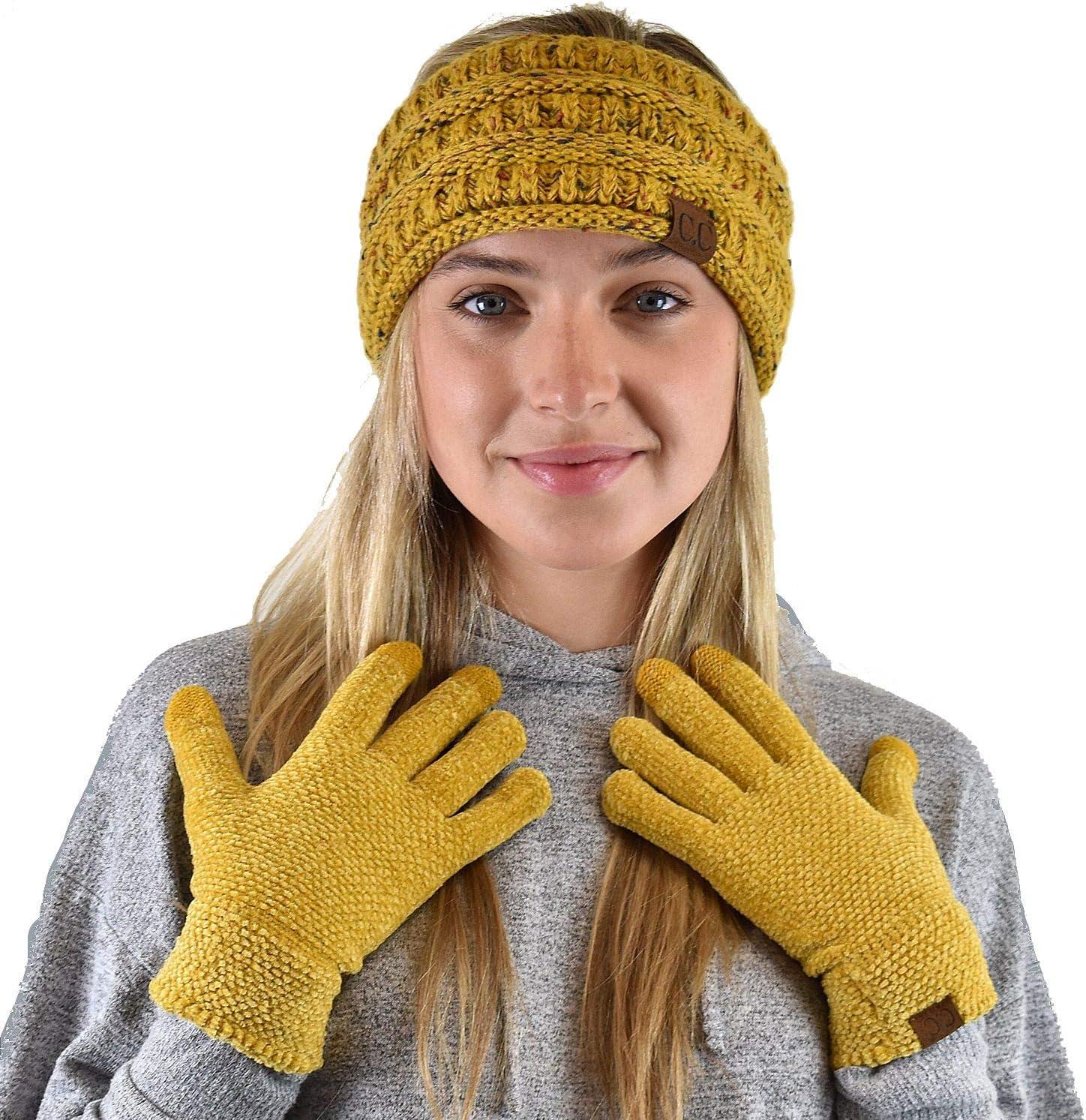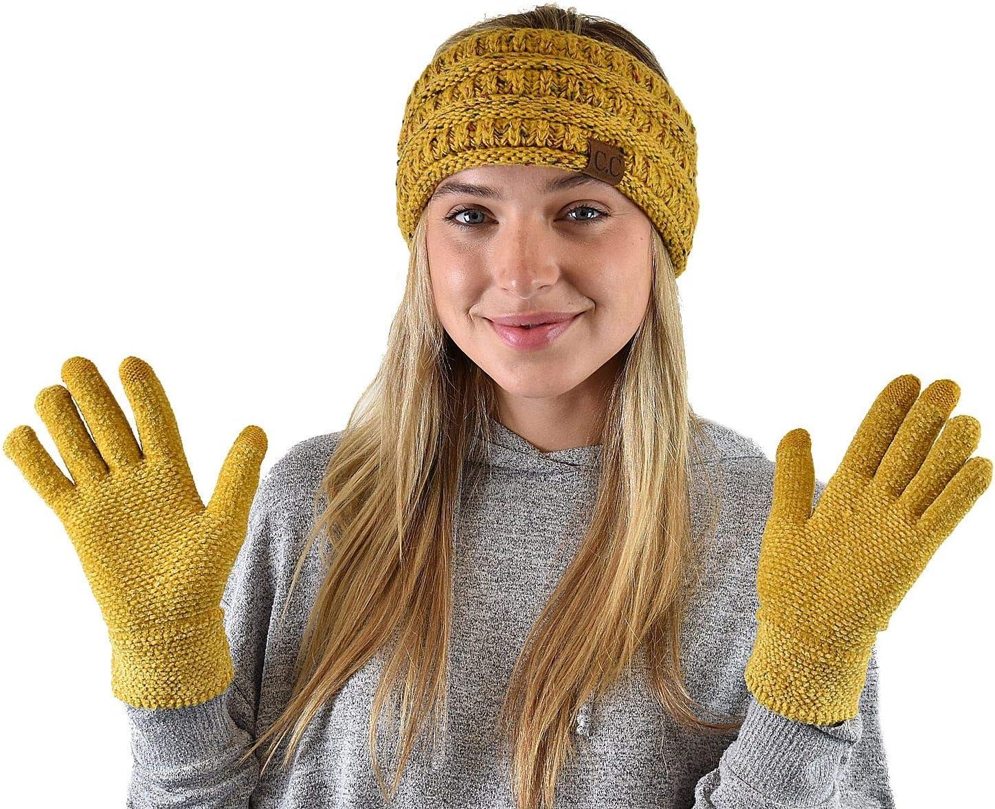 C.C Winter Warm Eco-Friendly Knit Chenille Touchscreen Texting Gloves(Mustard)
