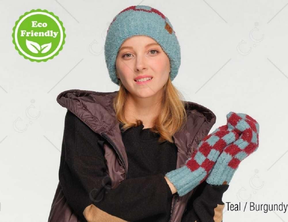 C.C Winter Warm Eco-Friendly Recycled Yarn Mittens(Checkered Olive/Brown)