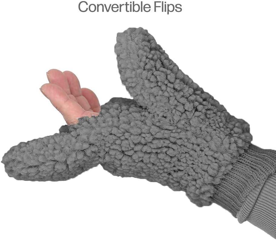 imageCC Women Fuzzy Lined Sherpa Cuff Warm Winter Beanie and Mitten SetGrey