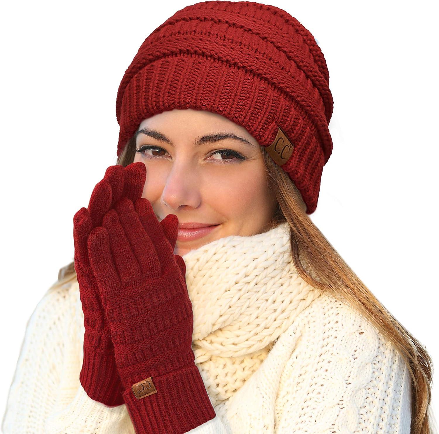 C.C Women Solid Ribbed Glove with Smart Tips (G-20)(G-33)(G-80)(Burgundy/Peach/Beige)