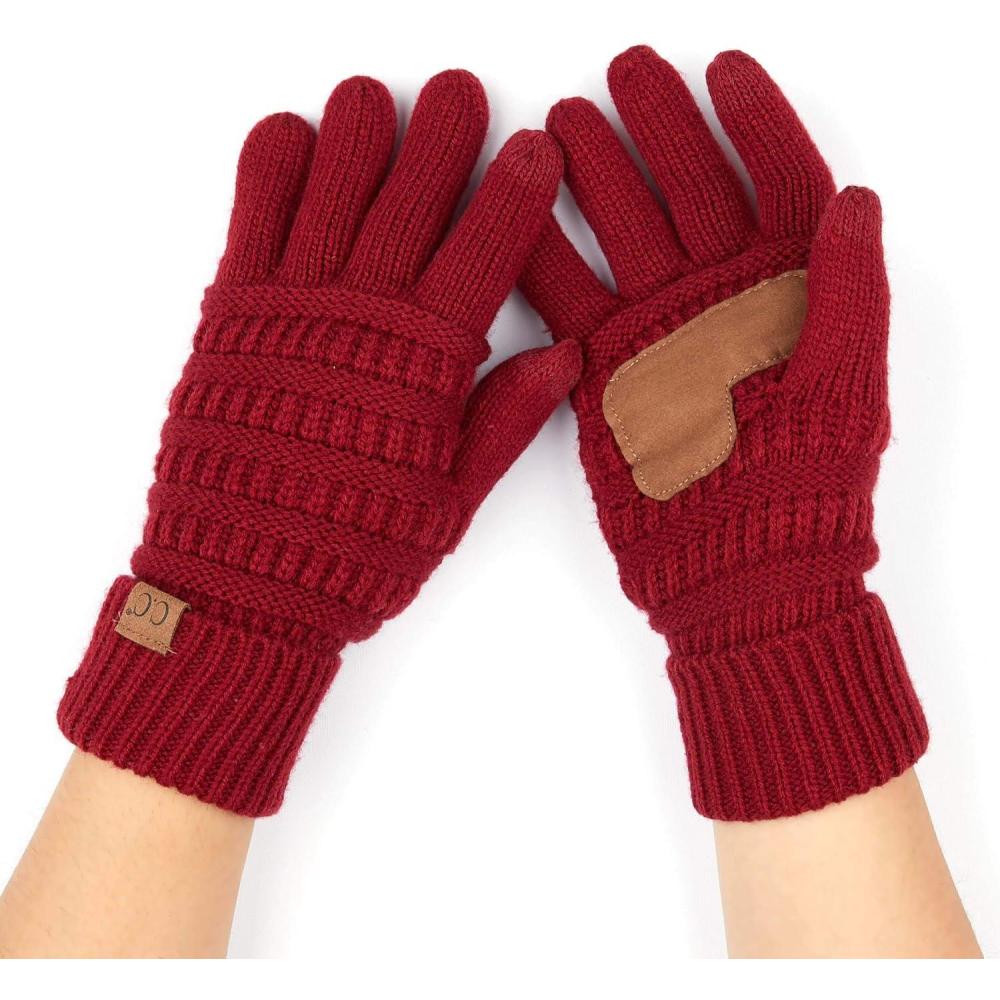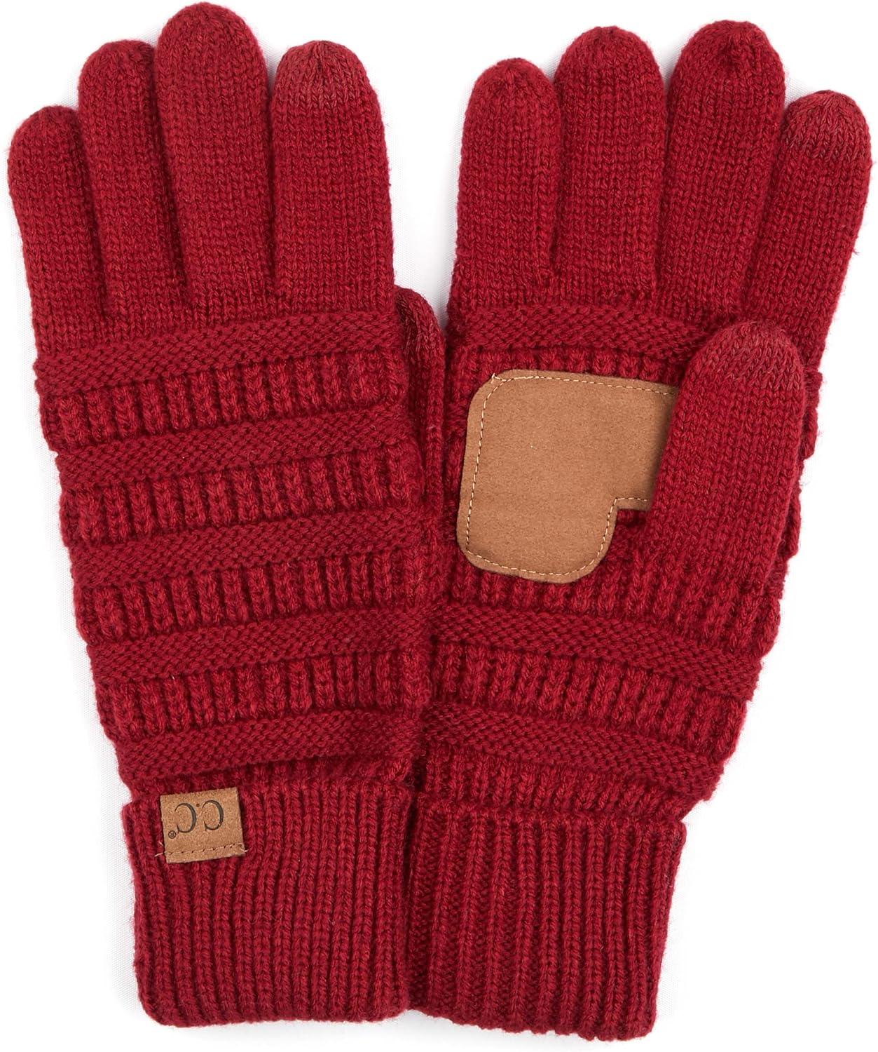 C.C Women Solid Ribbed Glove with Smart Tips (G-20)(G-33)(G-80)(Burgundy_prime)