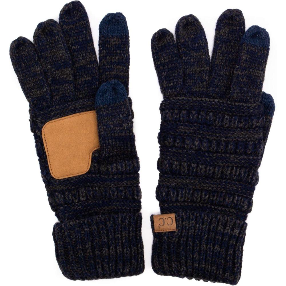 C.C Women Solid Ribbed Glove with Smart Tips (G-20)(G-33)(G-80)(Navy/Lt Grey)