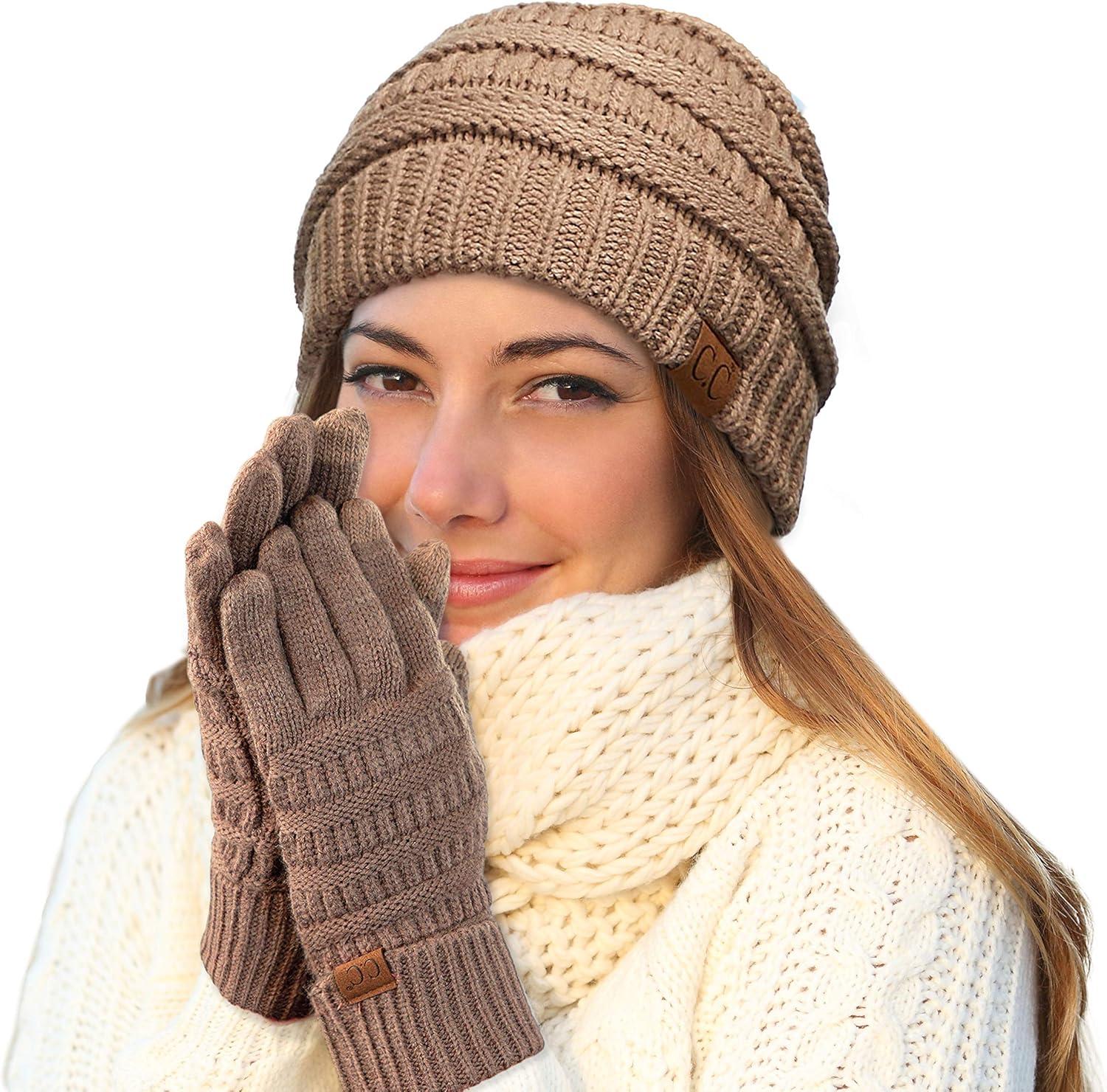C.C Women Solid Ribbed Glove with Smart Tips (G-20)(G-33)(G-80)(Taupe)