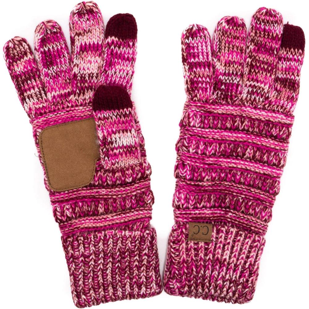 C.C Women Solid Ribbed Glove with Smart Tips (G-20)(G-33)(G-80)(Three Tone Pink)