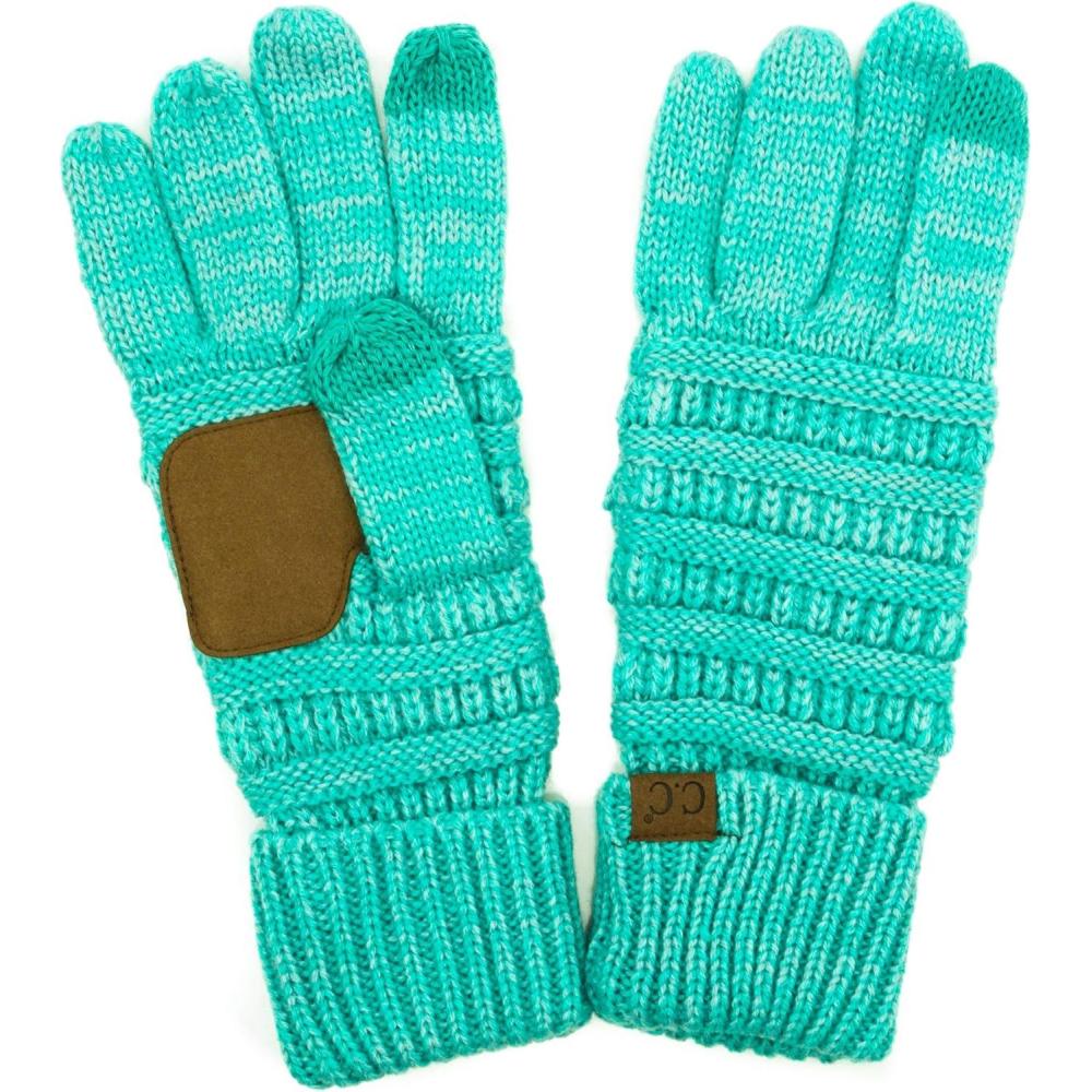 C.C Women Solid Ribbed Glove with Smart Tips (G-20)(G-33)(G-80)(Two Tone Aqua)