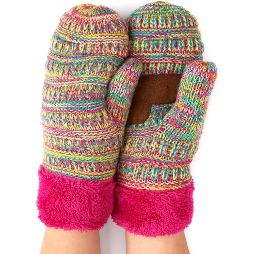C.C Women Thick Faux Fur – Sherpa Fleece Lined Warm Winter Mittens(#11-rainbow Mix)