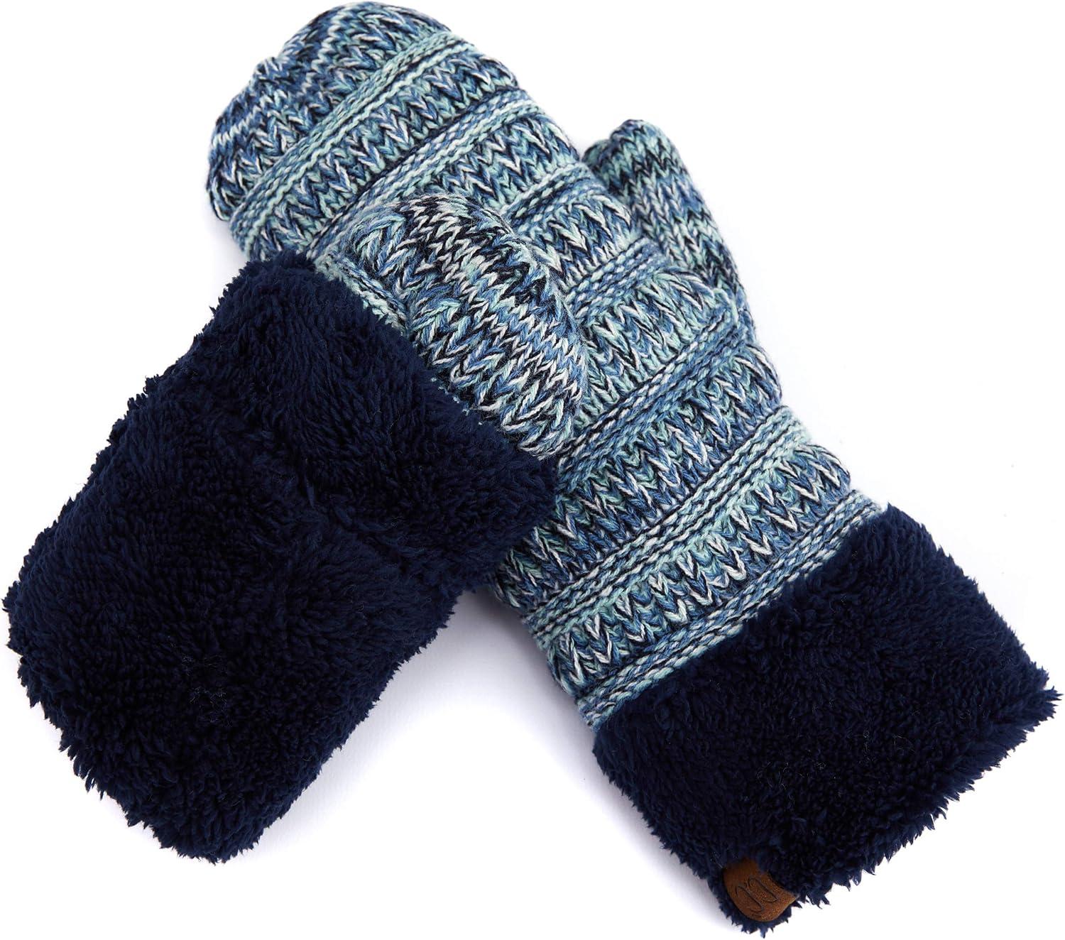 C.C Women Thick Faux Fur – Sherpa Fleece Lined Warm Winter Mittens(#40-navy Mix)