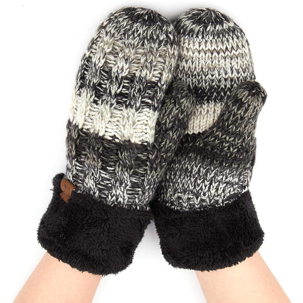 C.C Women Thick Faux Fur - Sherpa Fleece Lined Warm Winter Mittens(Black/ Grey Mix)