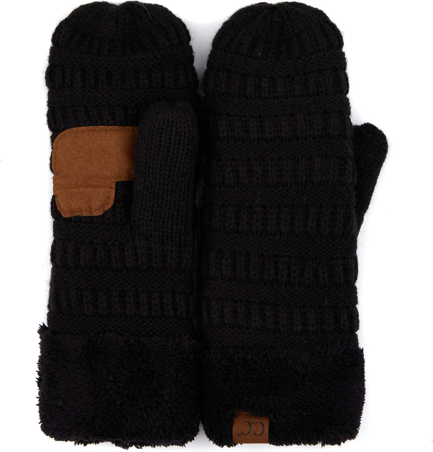 C.C Women Thick Faux Fur – Sherpa Fleece Lined Warm Winter Mittens(Black -Thick Solid)