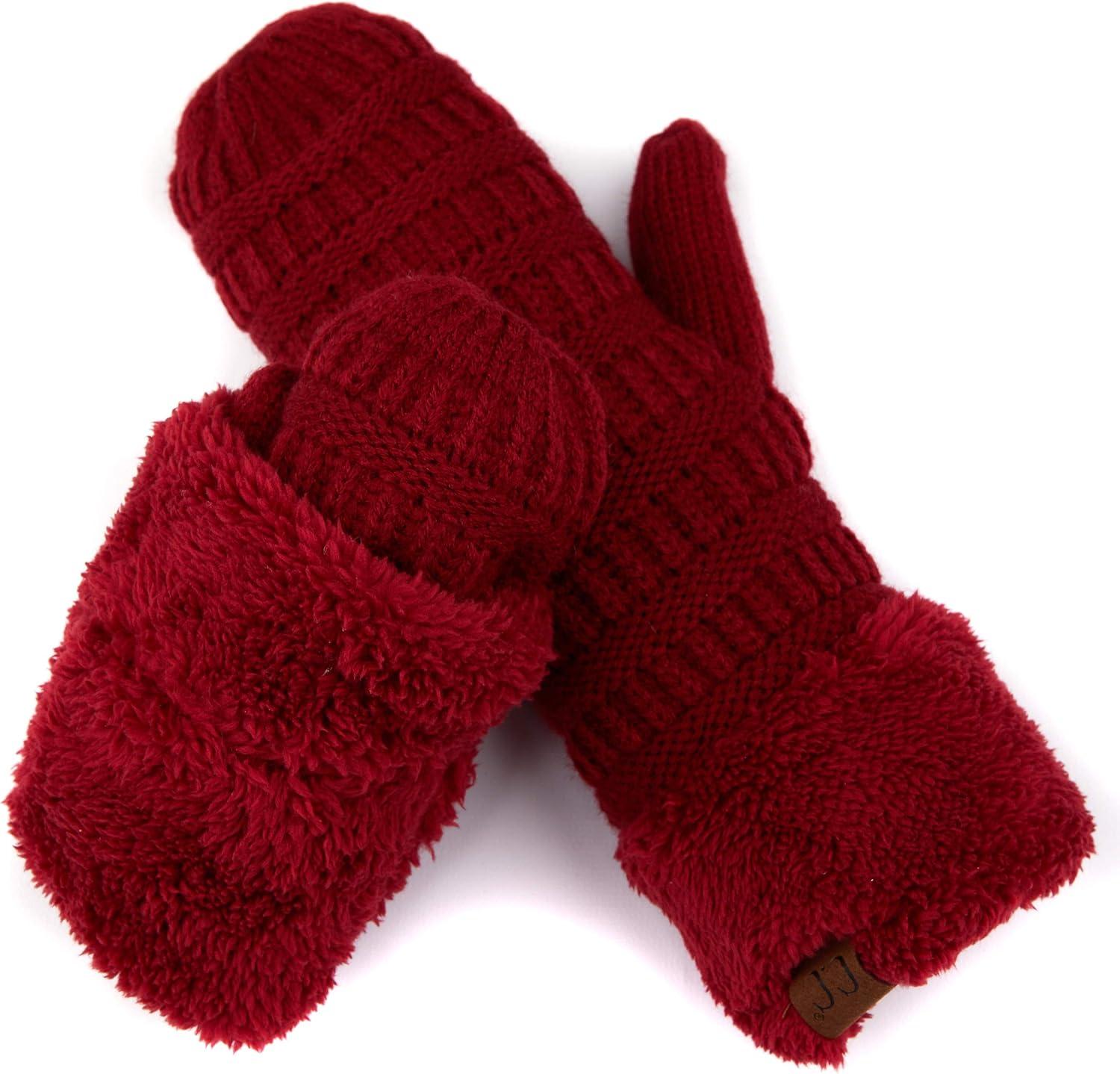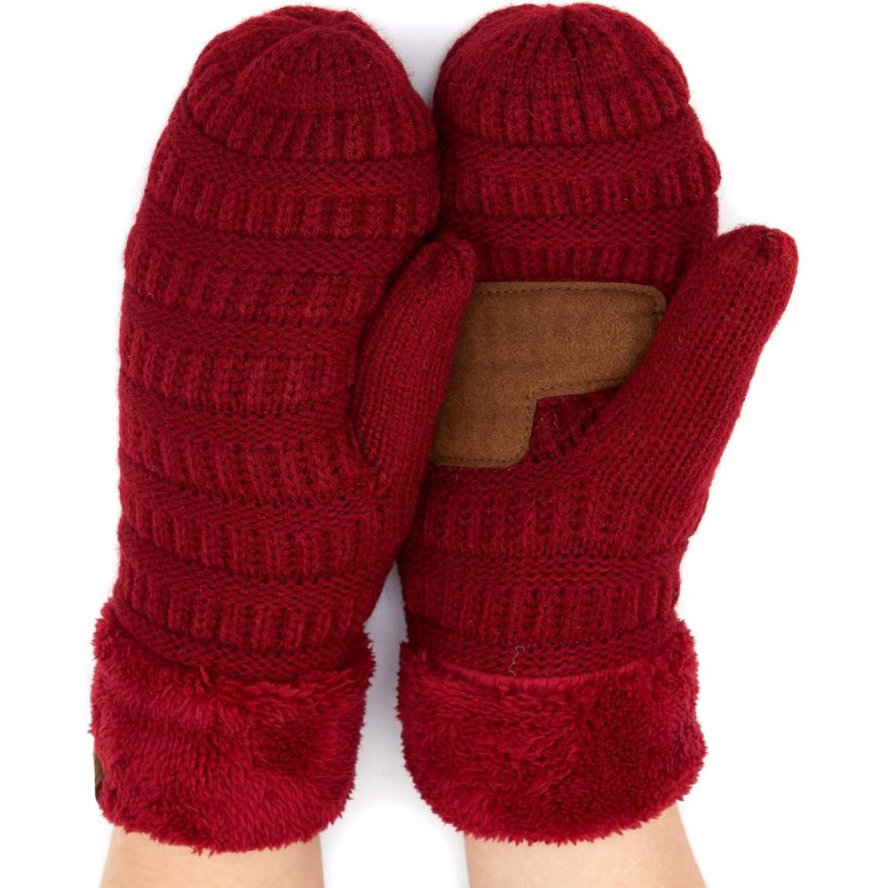 C.C Women Thick Faux Fur - Sherpa Fleece Lined Warm Winter Mittens(Burgundy -Thick Solid)