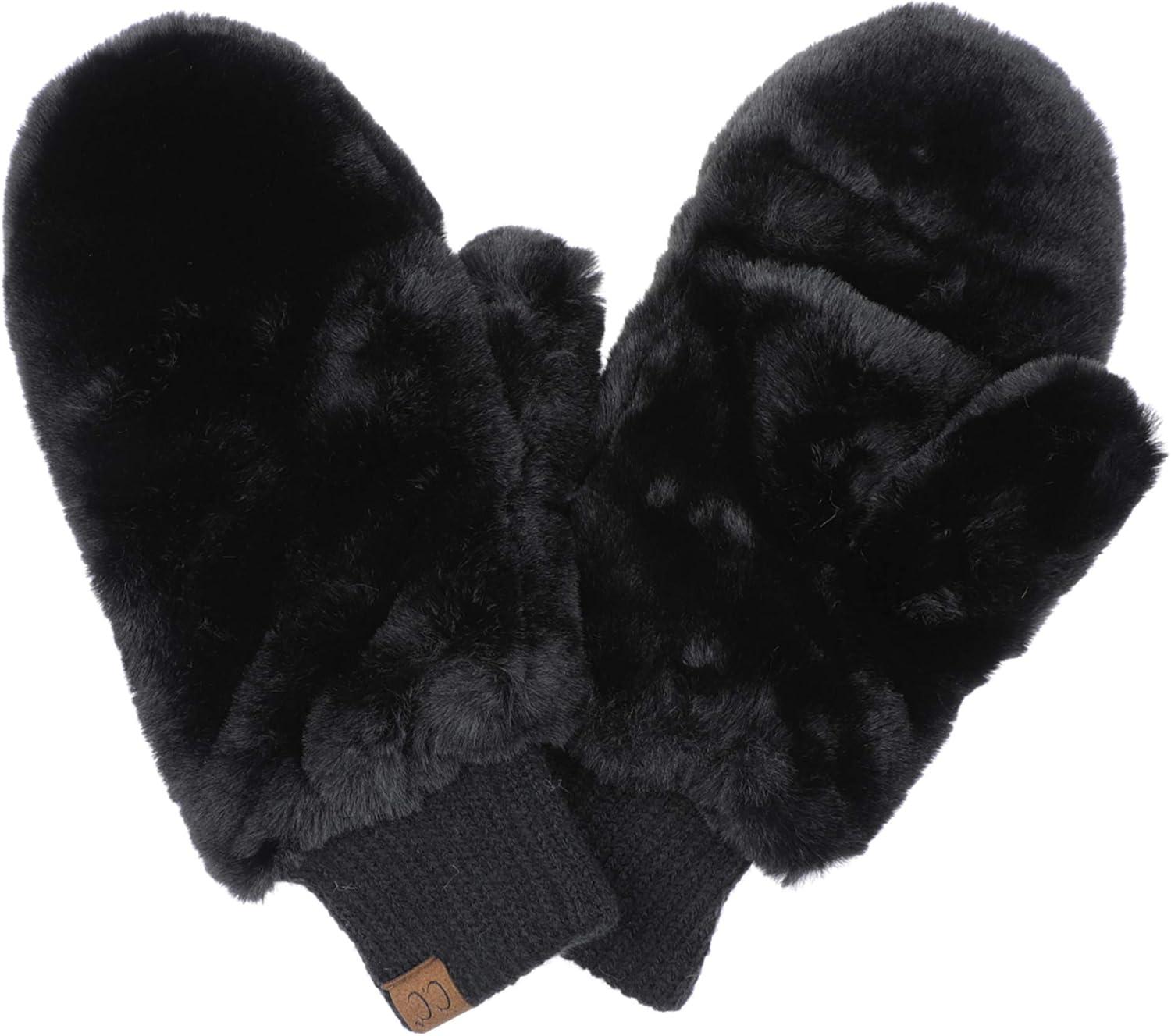 C.C Women Thick Faux Fur - Sherpa Fleece Lined Warm Winter Mittens(Faux Fur-black.)