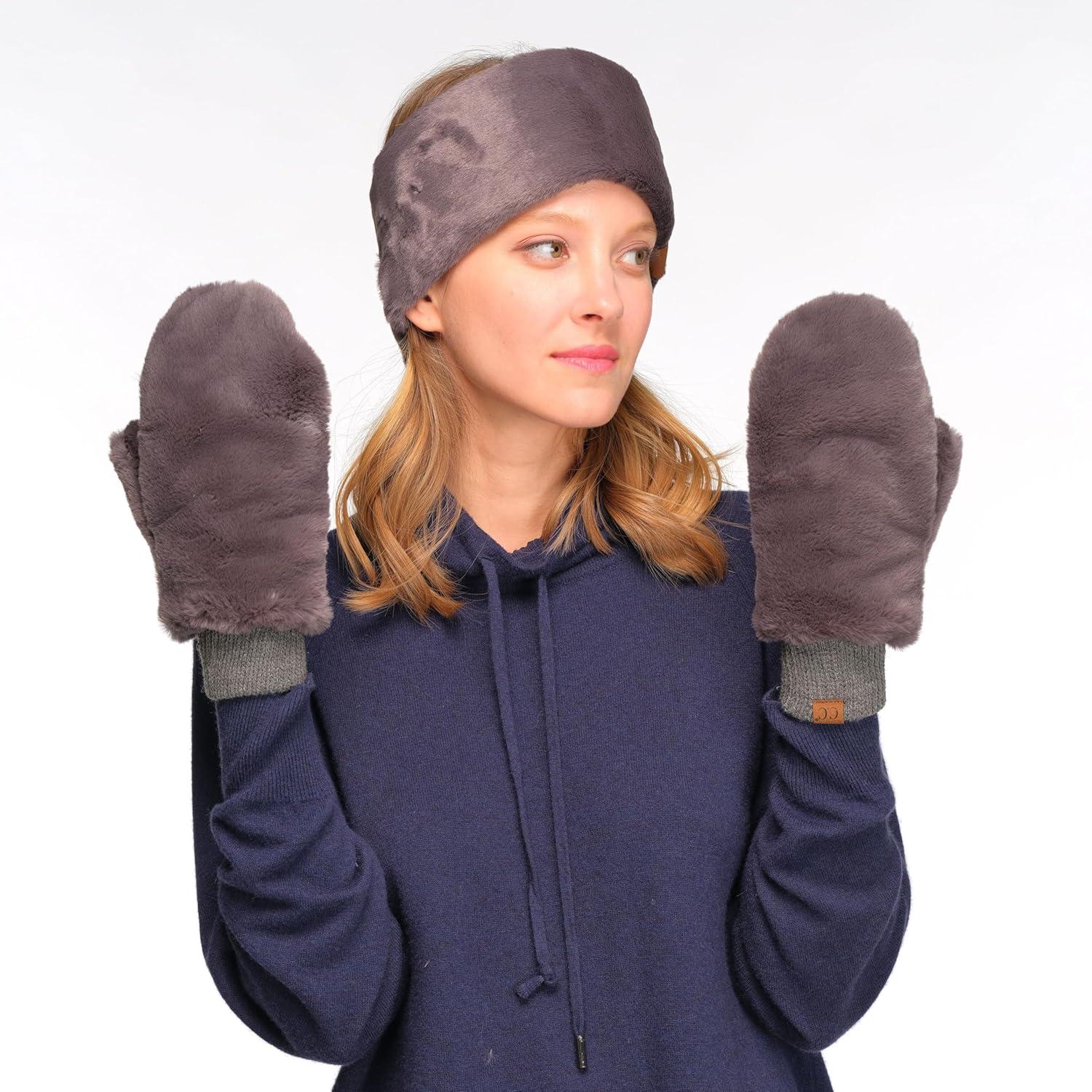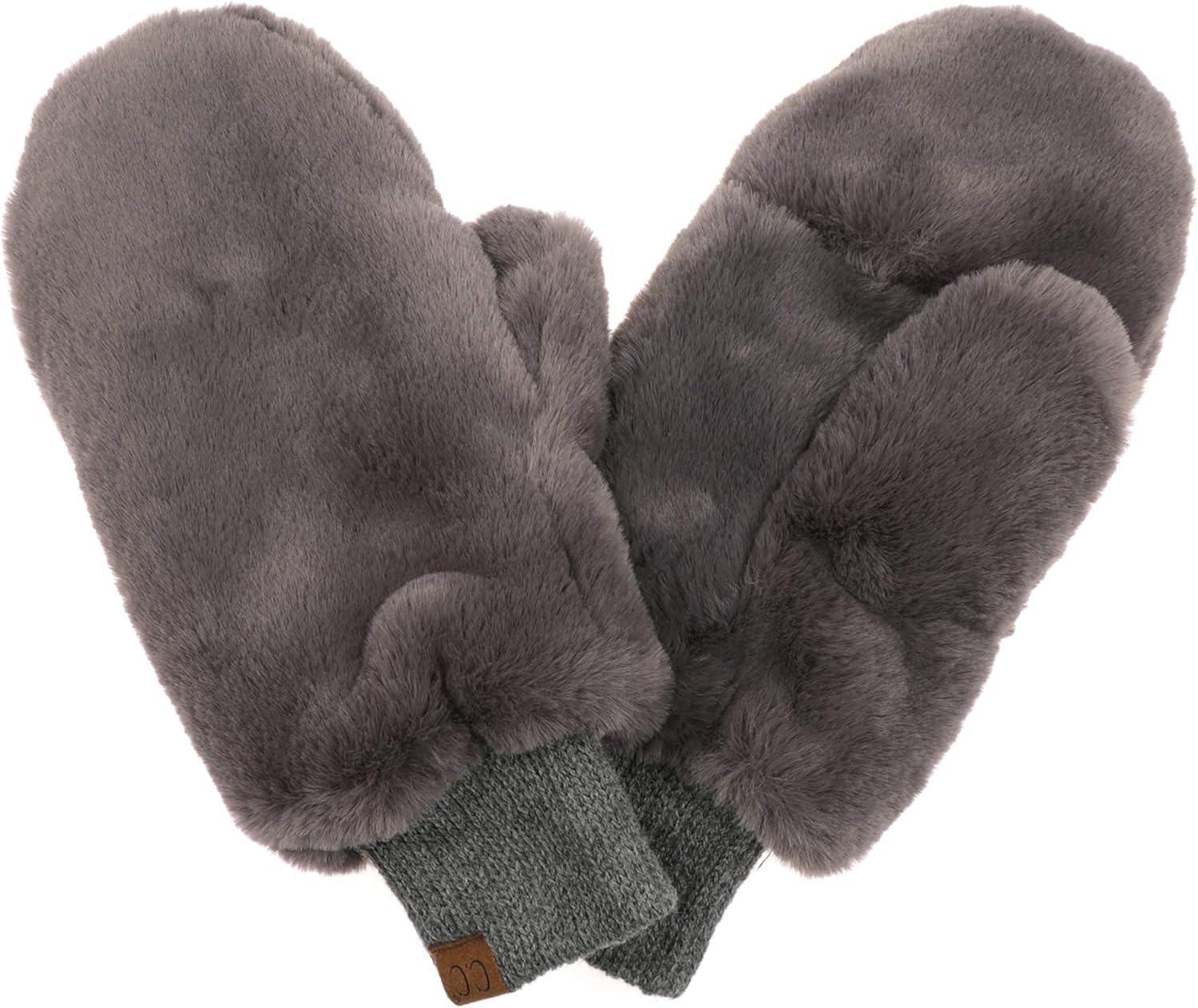 C.C Women Thick Faux Fur – Sherpa Fleece Lined Warm Winter Mittens(Faux Fur-dk Mel Grey-cc)