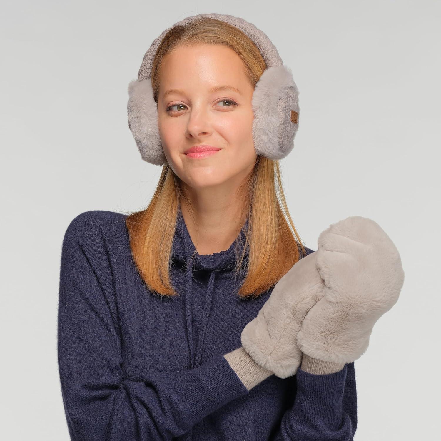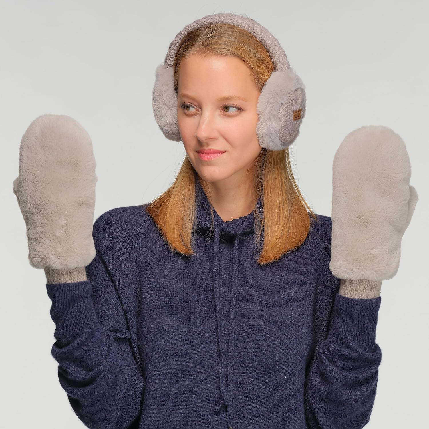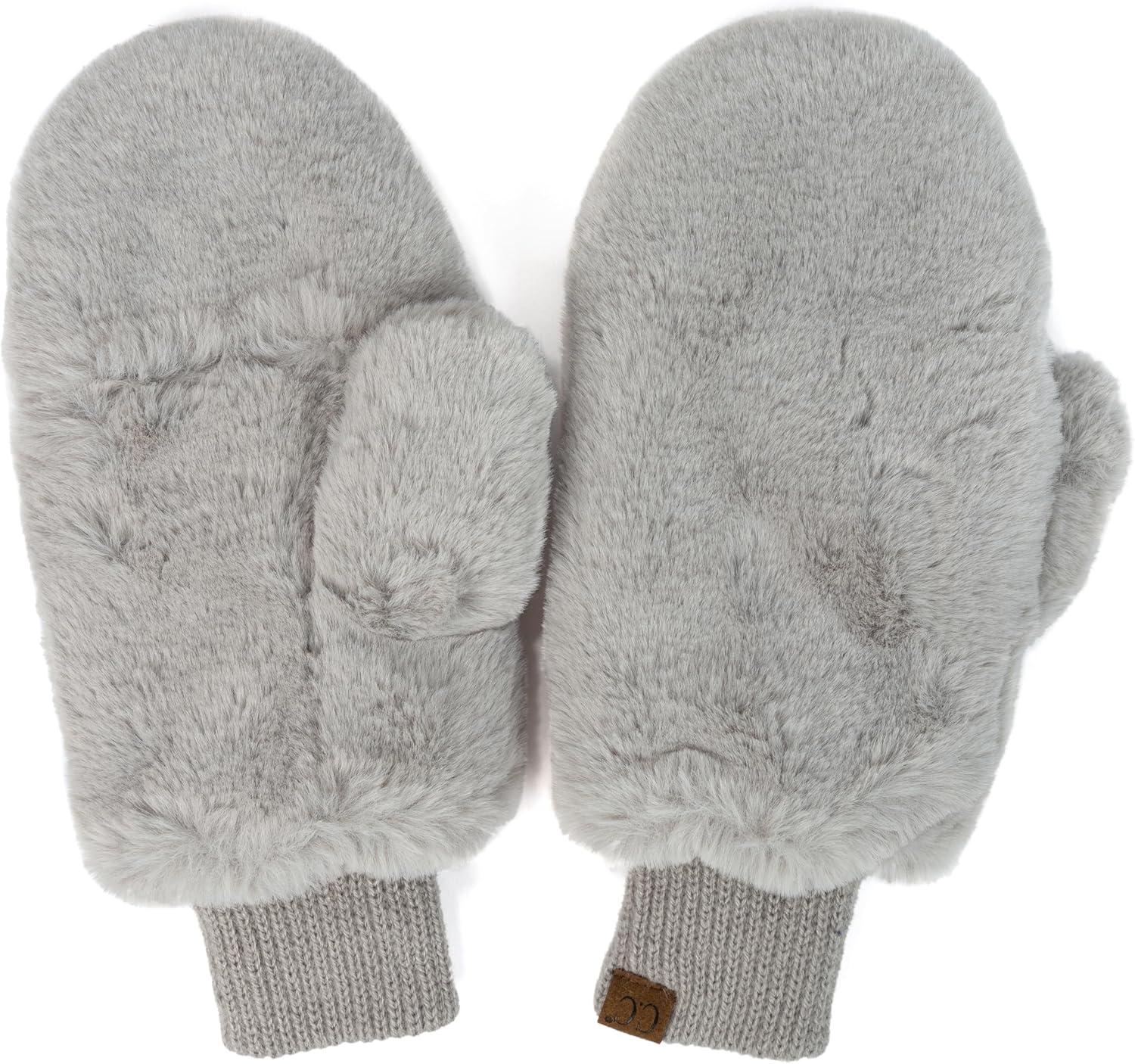 C.C Women Thick Faux Fur – Sherpa Fleece Lined Warm Winter Mittens(Faux Fur-lt. Mel Grey)