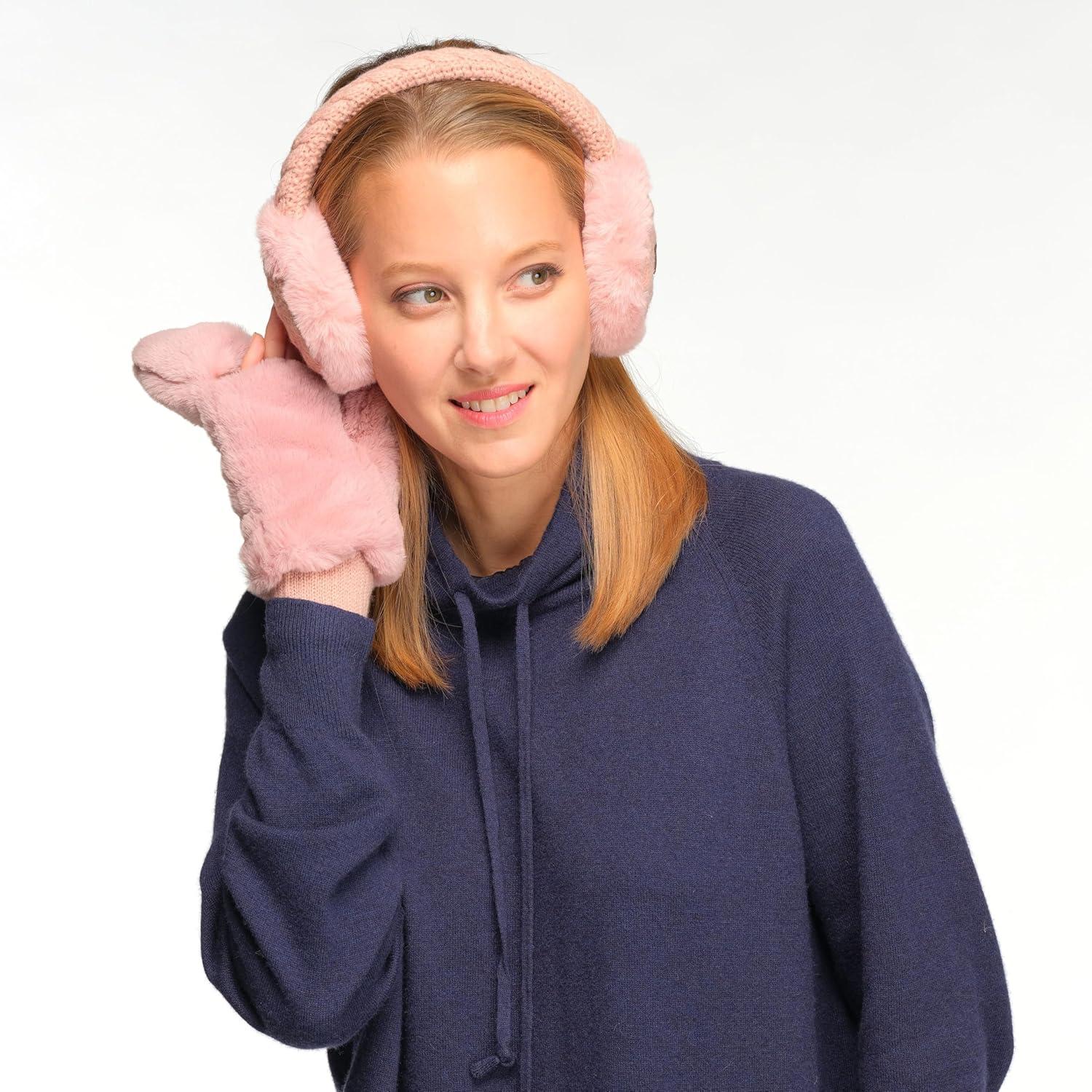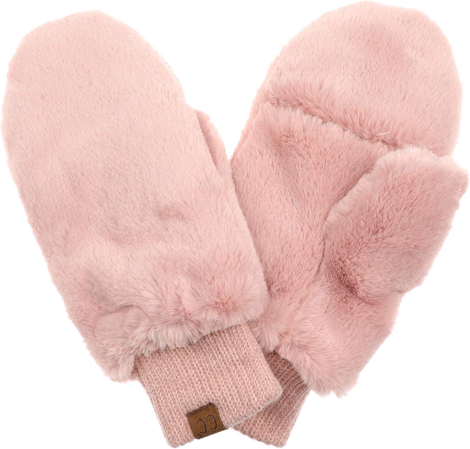C.C Women Thick Faux Fur – Sherpa Fleece Lined Warm Winter Mittens(Faux Fur-rose-cc)