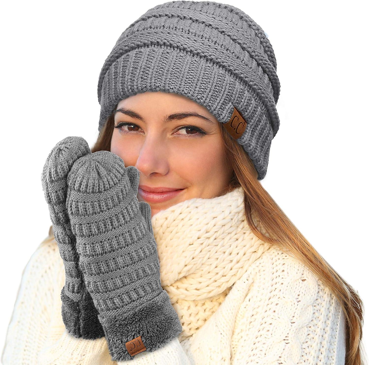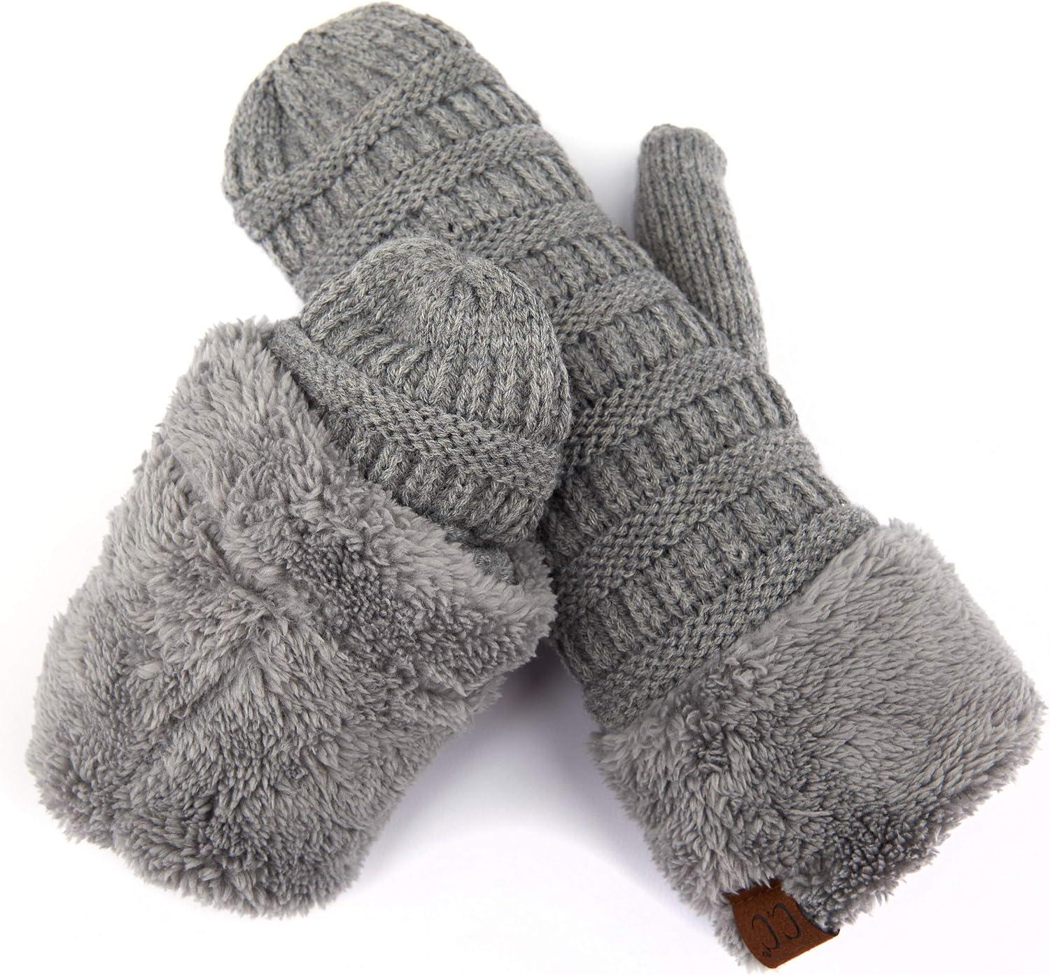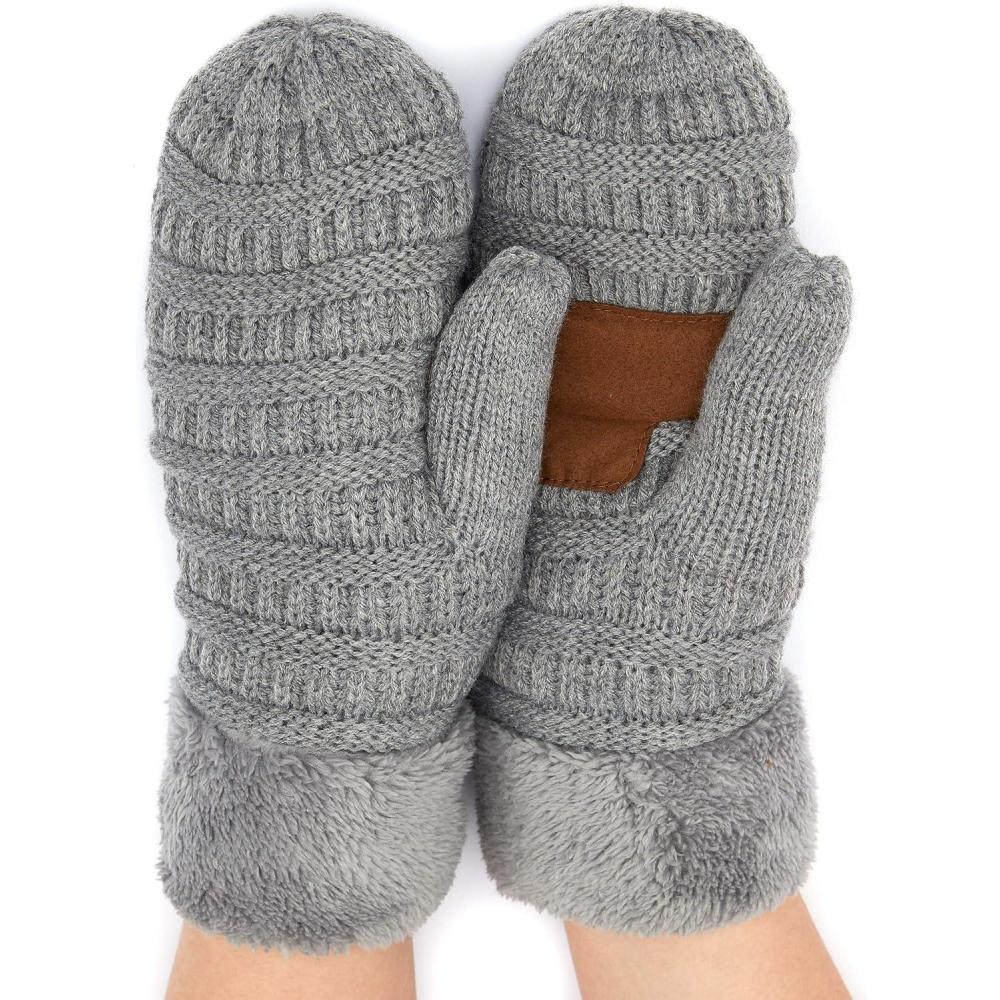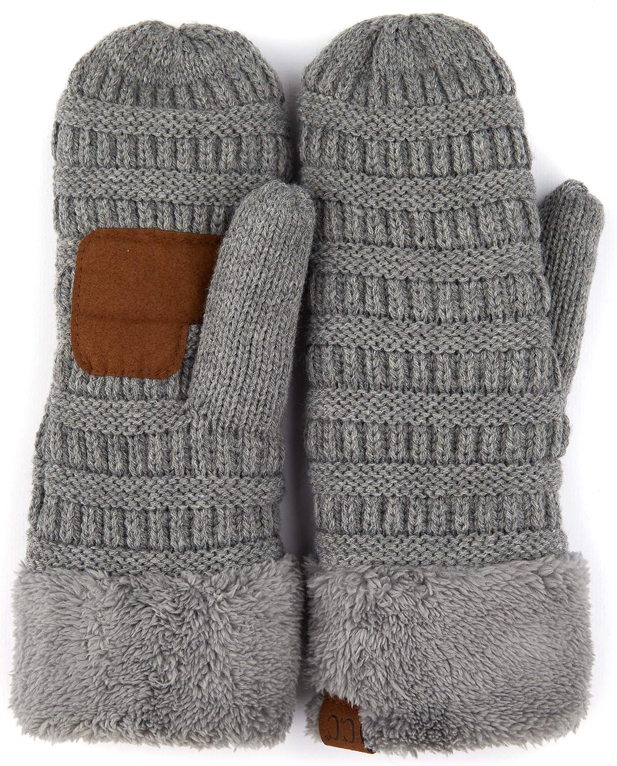 C.C Women Thick Faux Fur - Sherpa Fleece Lined Warm Winter Mittens(Lt. Mel. Grey -Thick Solid)