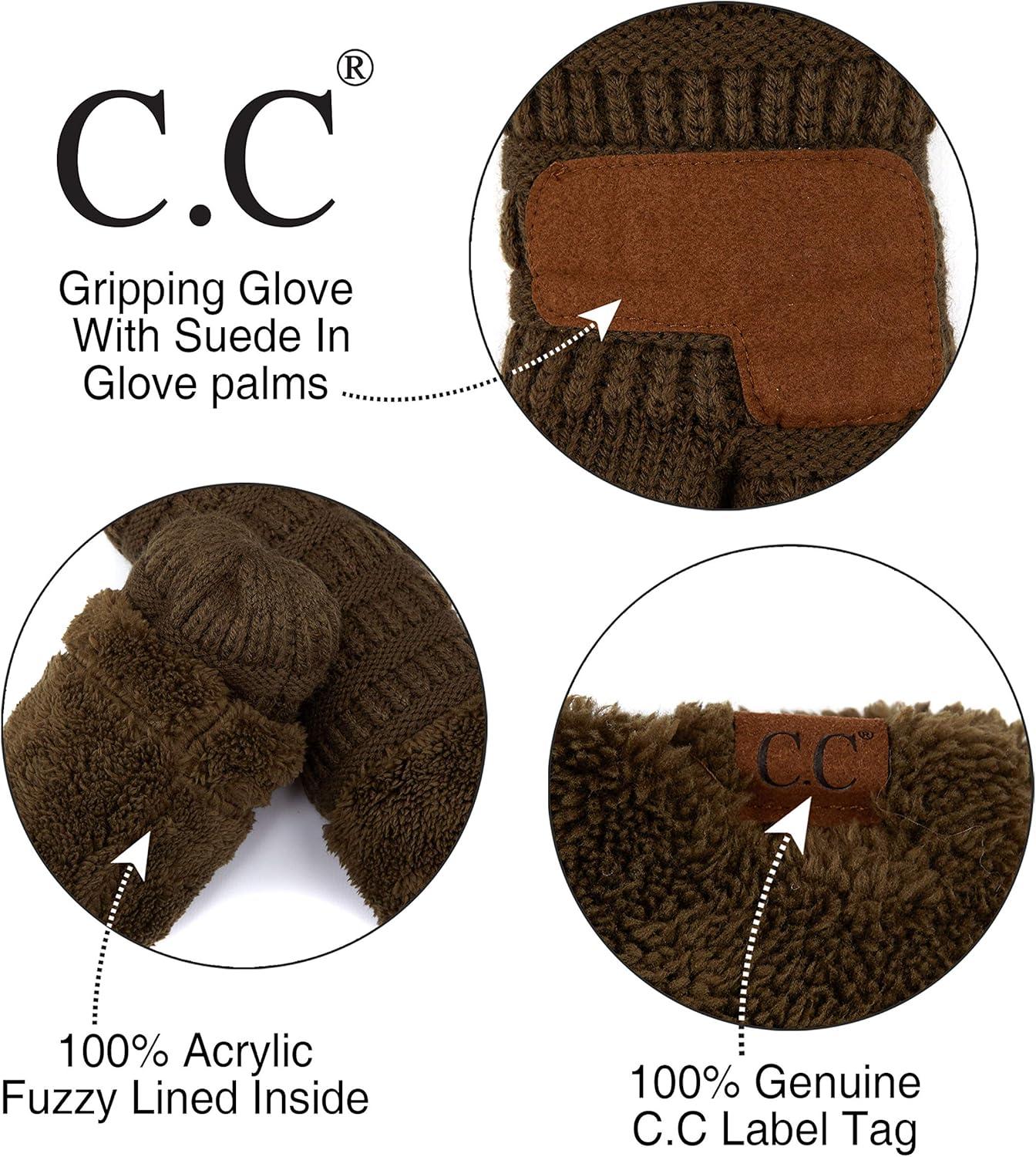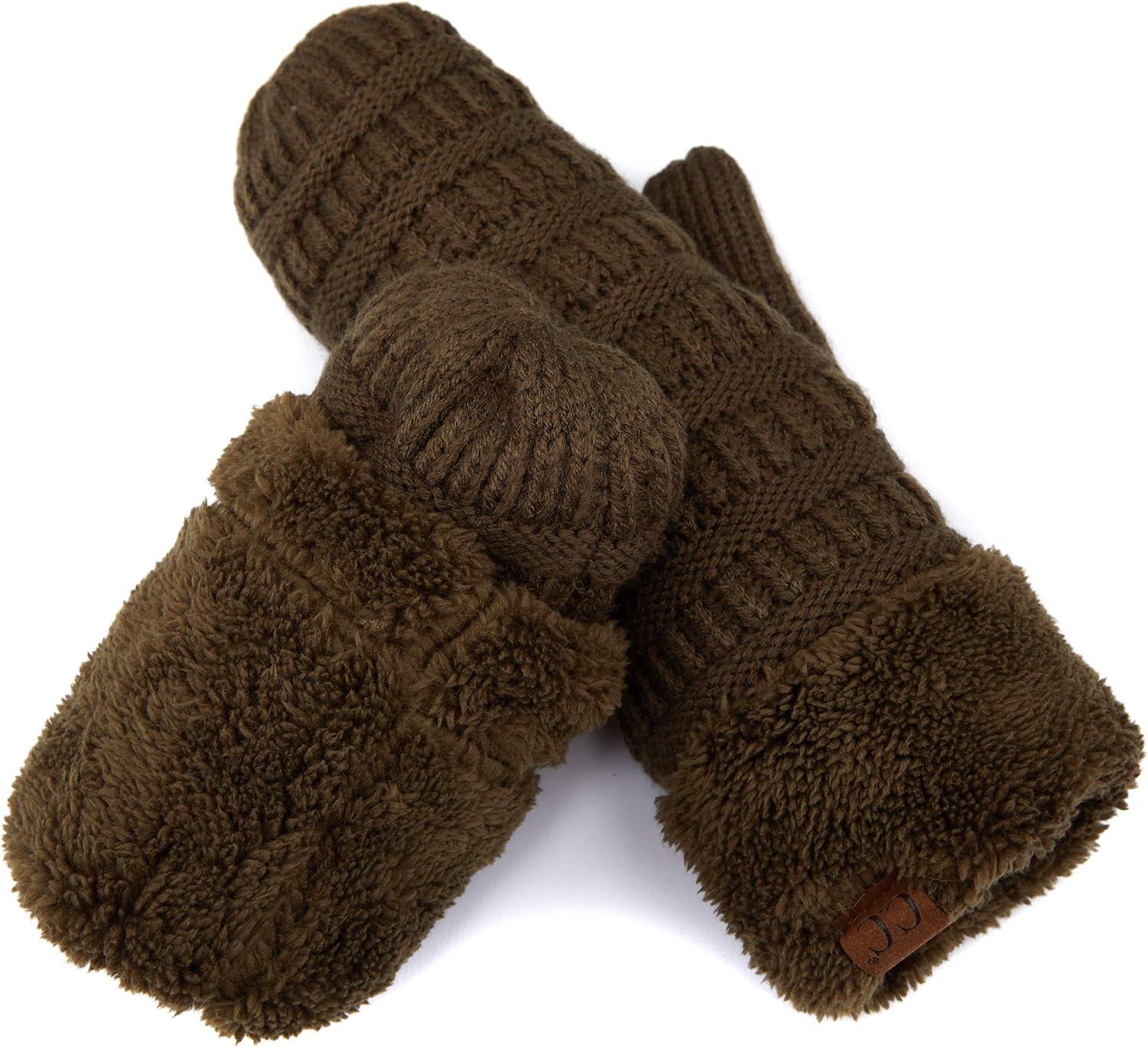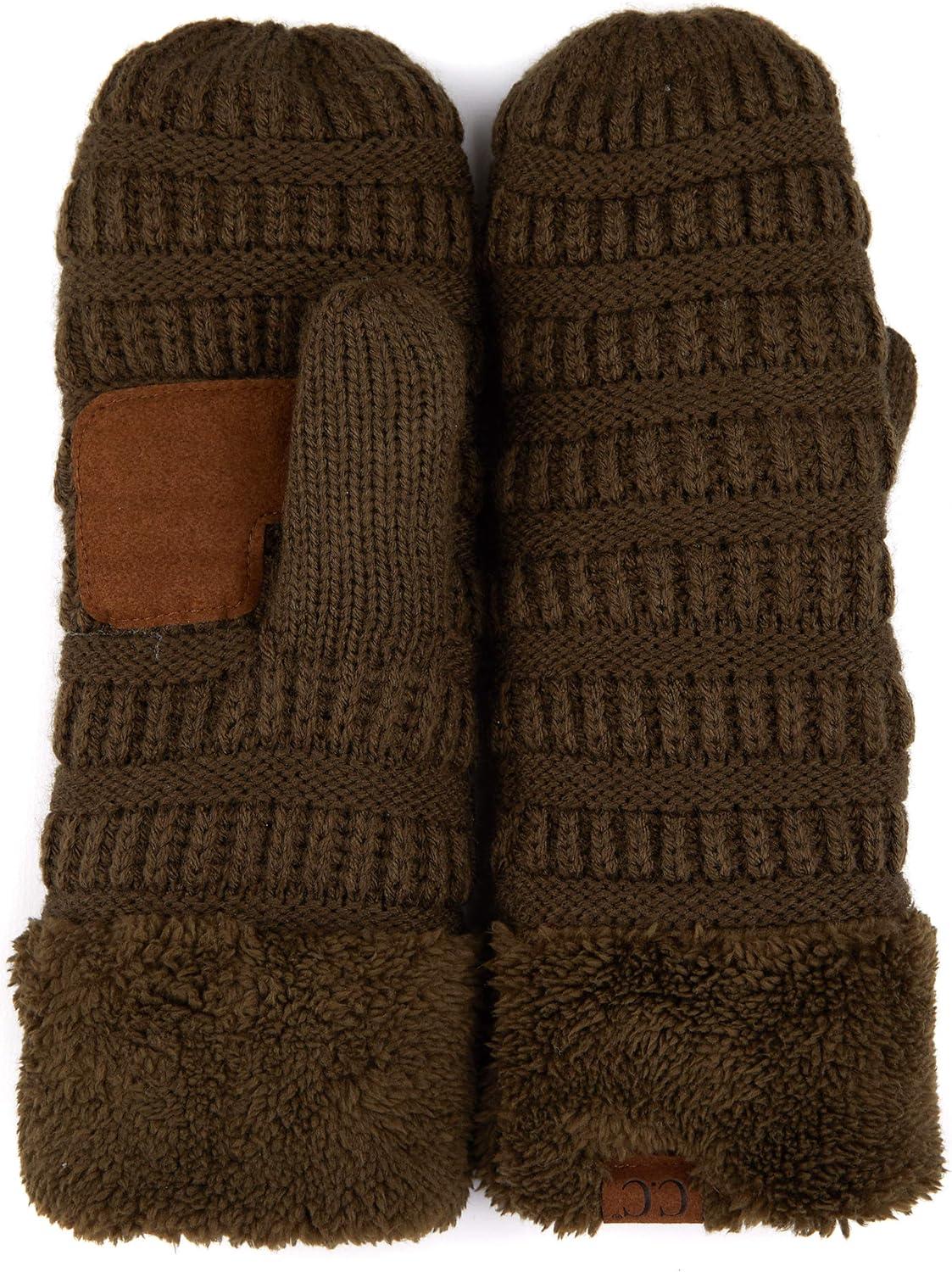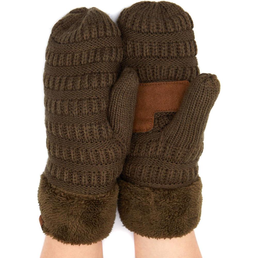 C.C Women Thick Faux Fur - Sherpa Fleece Lined Warm Winter Mittens(New Olive -Thick Solid)