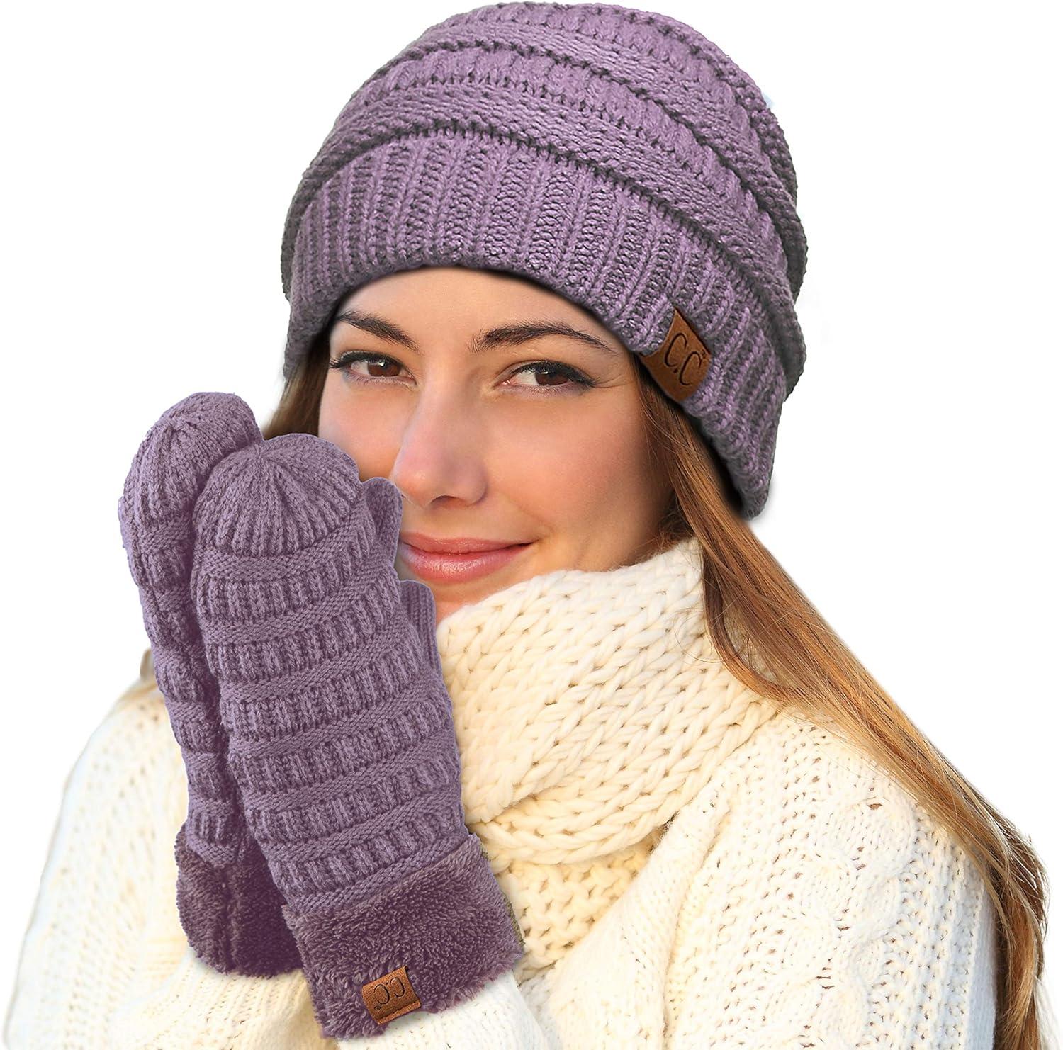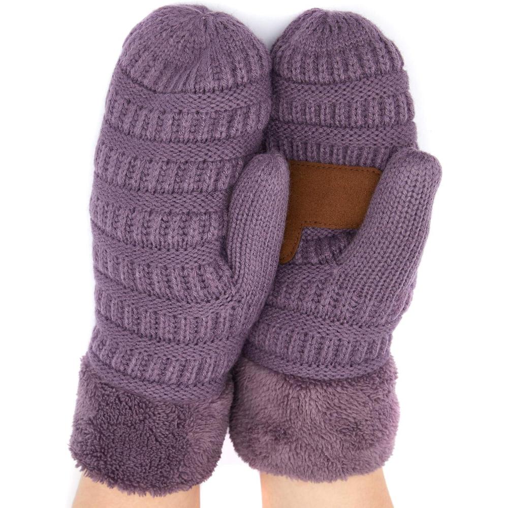 C.C Women Thick Faux Fur - Sherpa Fleece Lined Warm Winter Mittens(Violet -Thick Solid)
