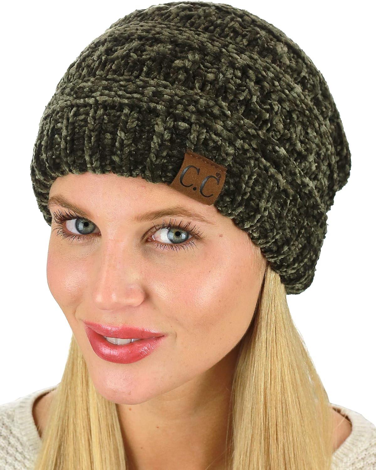 C.C Women’s Chenille Soft Warm Thick Knit Beanie Cap Hat(New Olive)