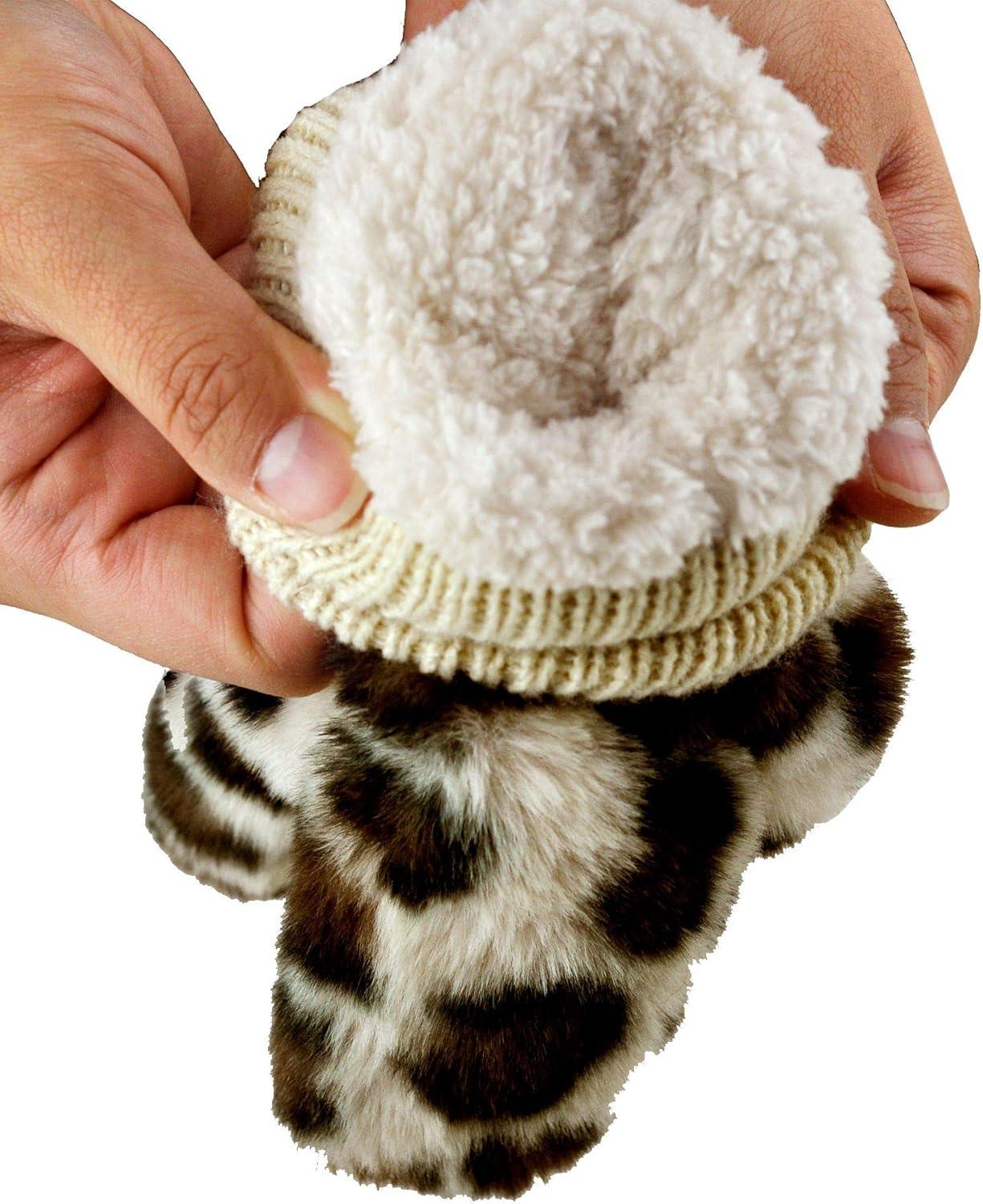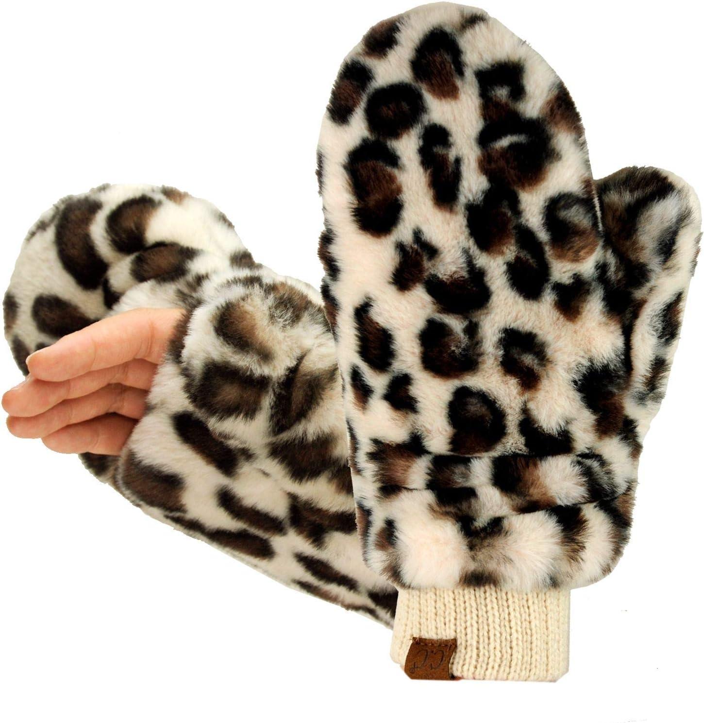 C.C Women’s Faux Fur Wrist Length Fingerless Sherpa Lined Convertible Mittens Gloves(Leopard Print Beige)