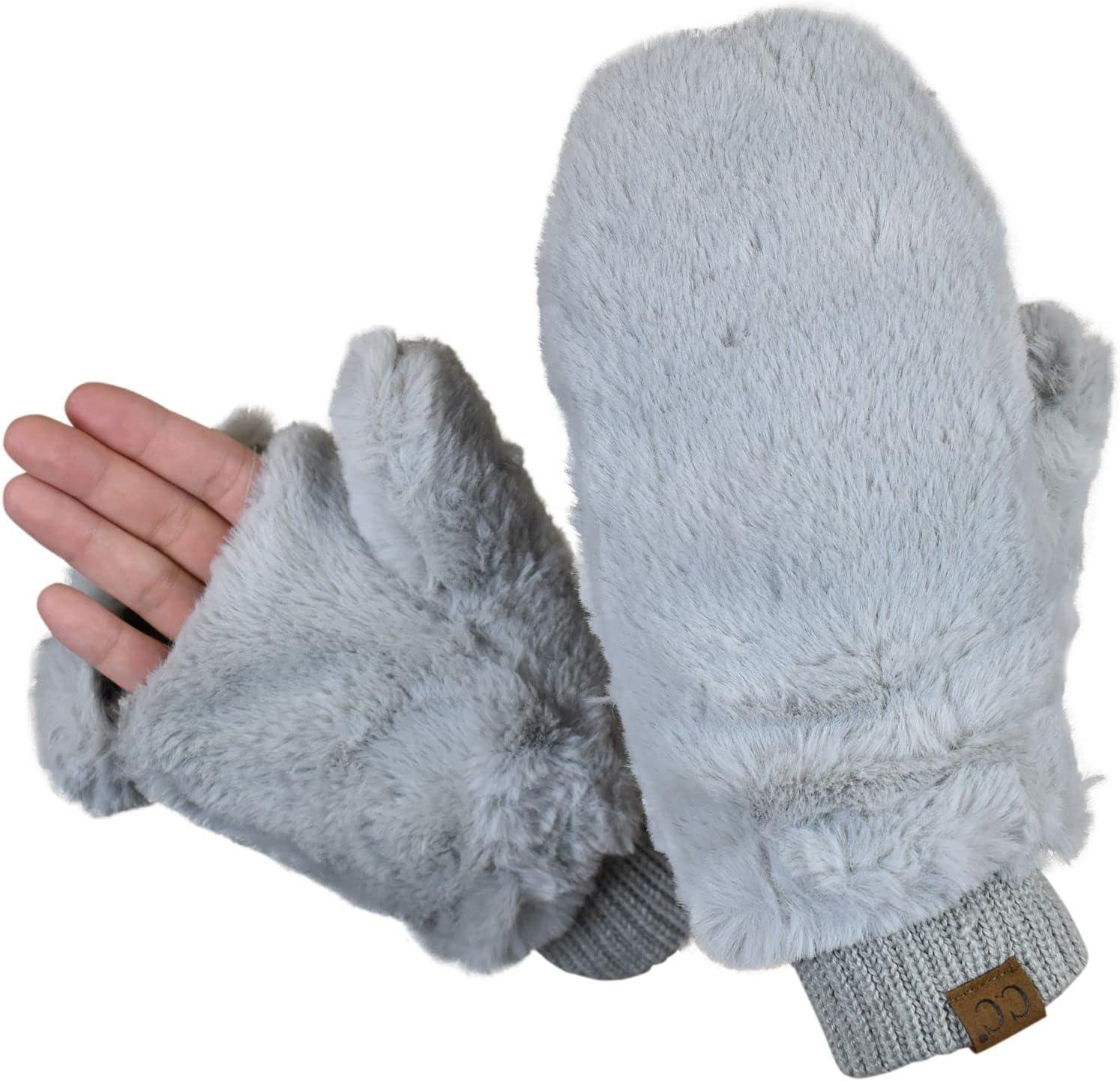 C.C Women’s Faux Fur Wrist Length Fingerless Sherpa Lined Convertible Mittens Gloves(Light Gray)