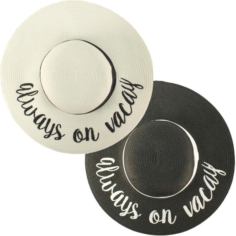 C.C Women's Paper Weaved Crushable Beach Embroidered Quote Floppy Brim Sun Hat(Always on Vacay Duo Pack)