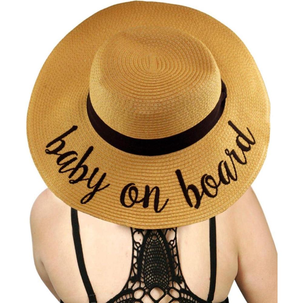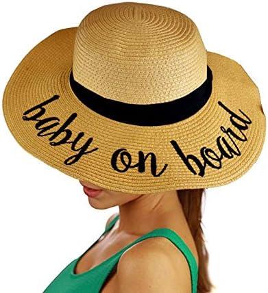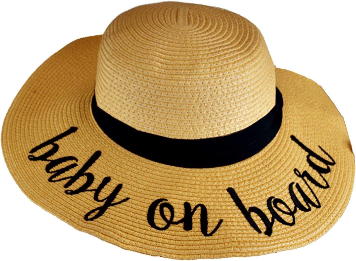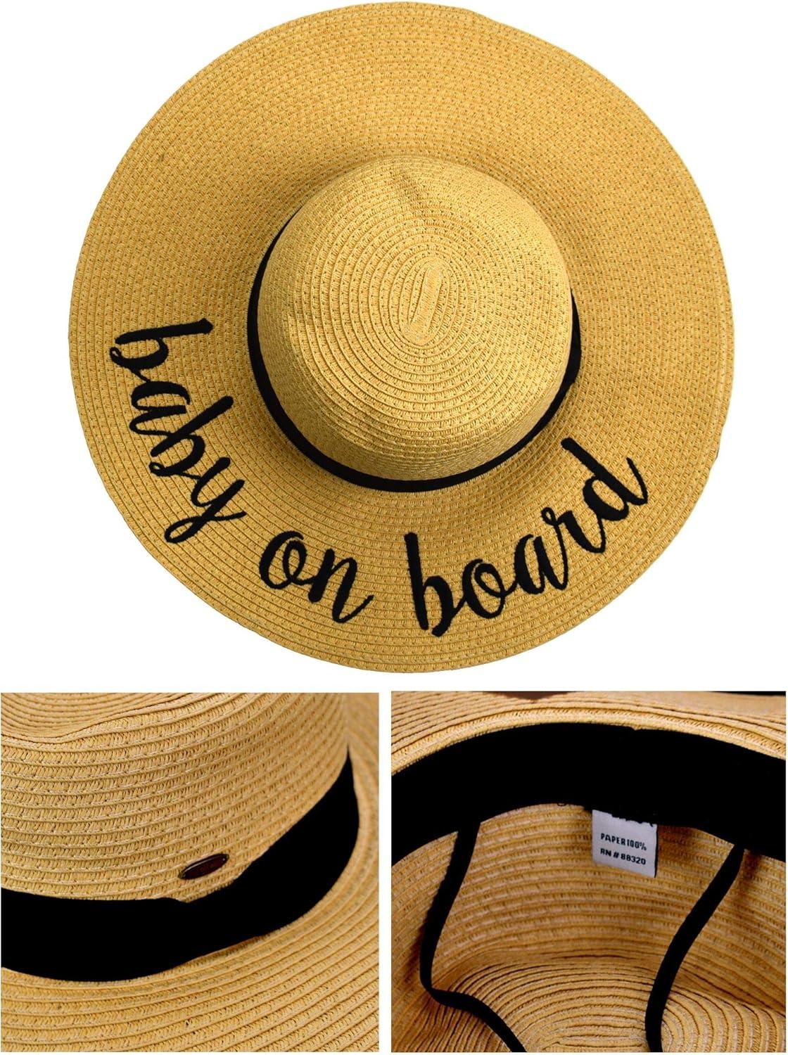 C.C Women's Paper Weaved Crushable Beach Embroidered Quote Floppy Brim Sun Hat(Baby on Board)