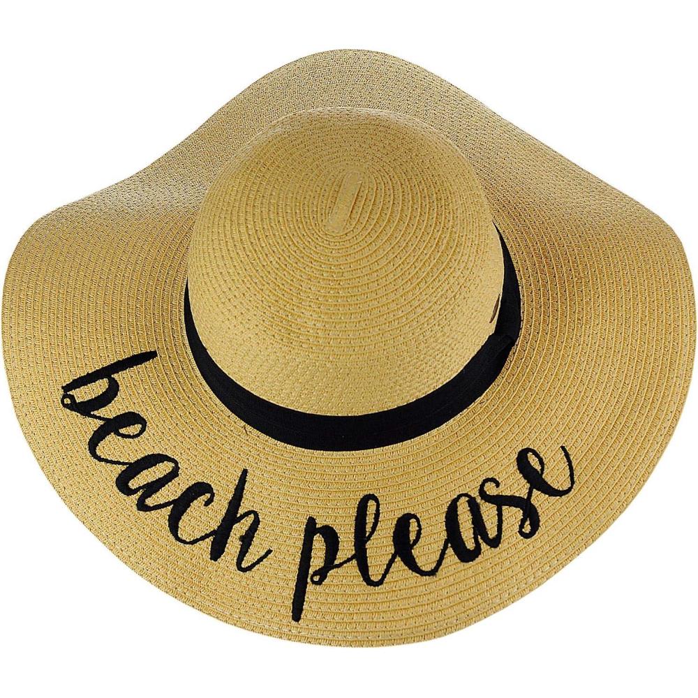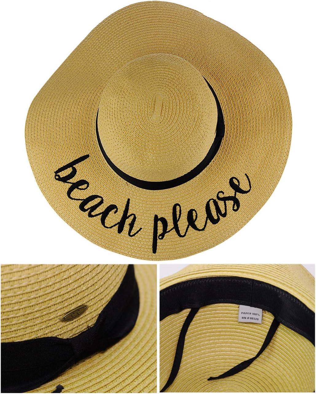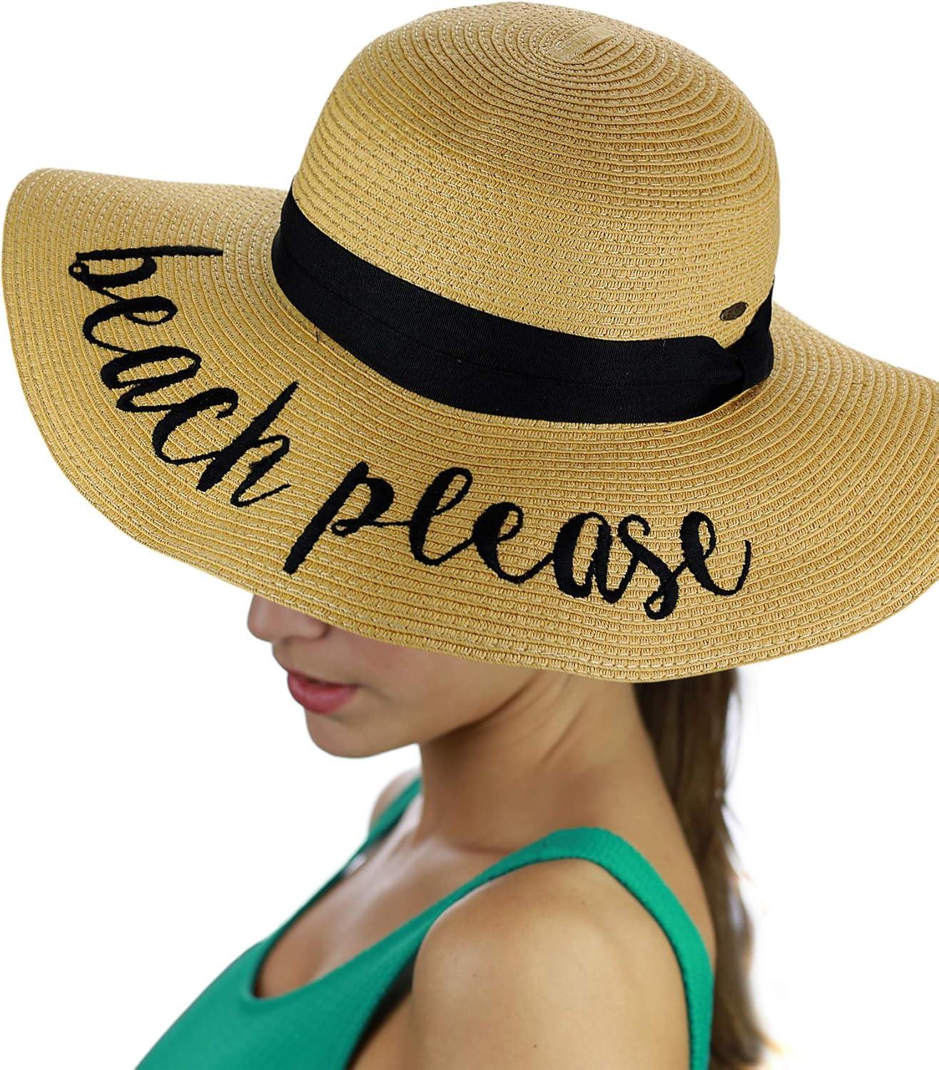 C.C Women's Paper Weaved Crushable Beach Embroidered Quote Floppy Brim Sun Hat(Beach Please)