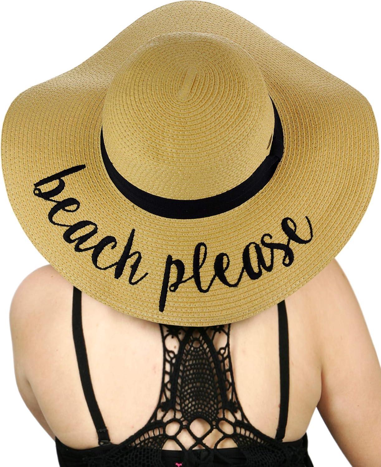 imageCC Womens Paper Weaved Crushable Beach Embroidered Quote Floppy Brim Sun HatBeach Please