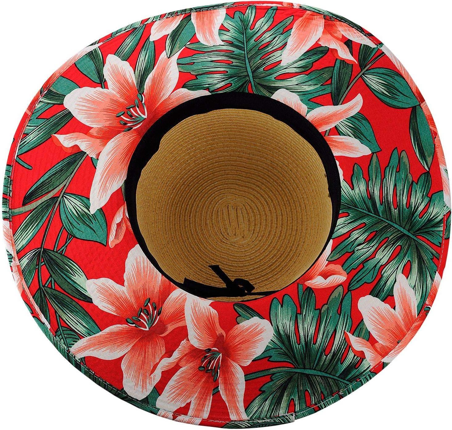 C.C Women's Paper Weaved Crushable Beach UPF 50+ Floppy Brim Sun Hat with Print(Lily Red)