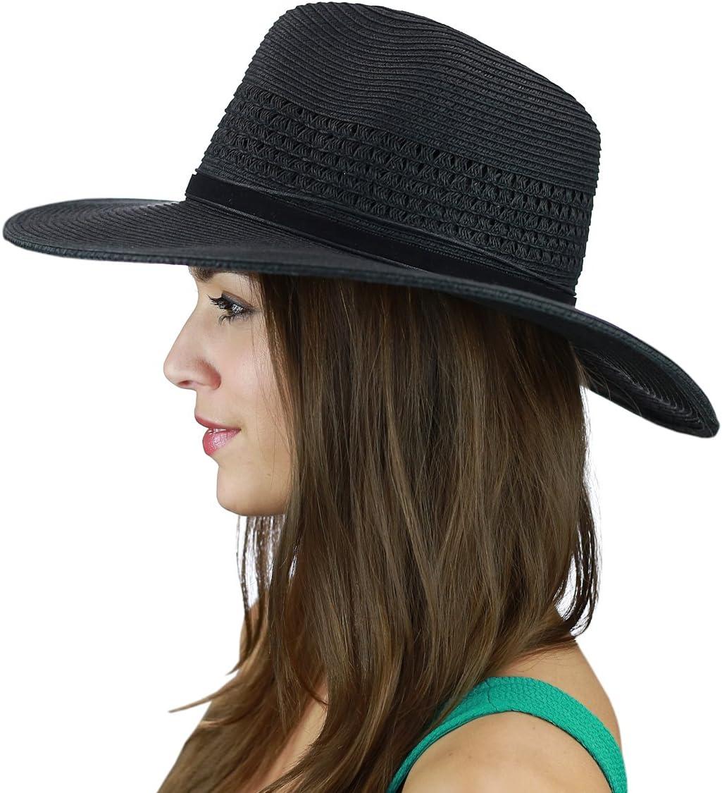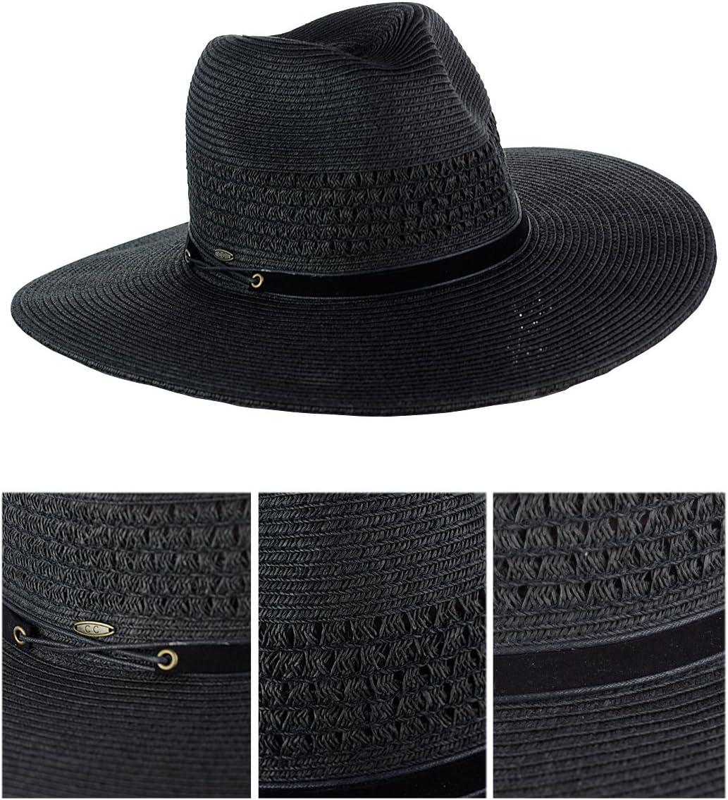 C.C Women’s String & Faux Suede Band Wide Brim Weaved Panama Summer Sun Hat(Black)