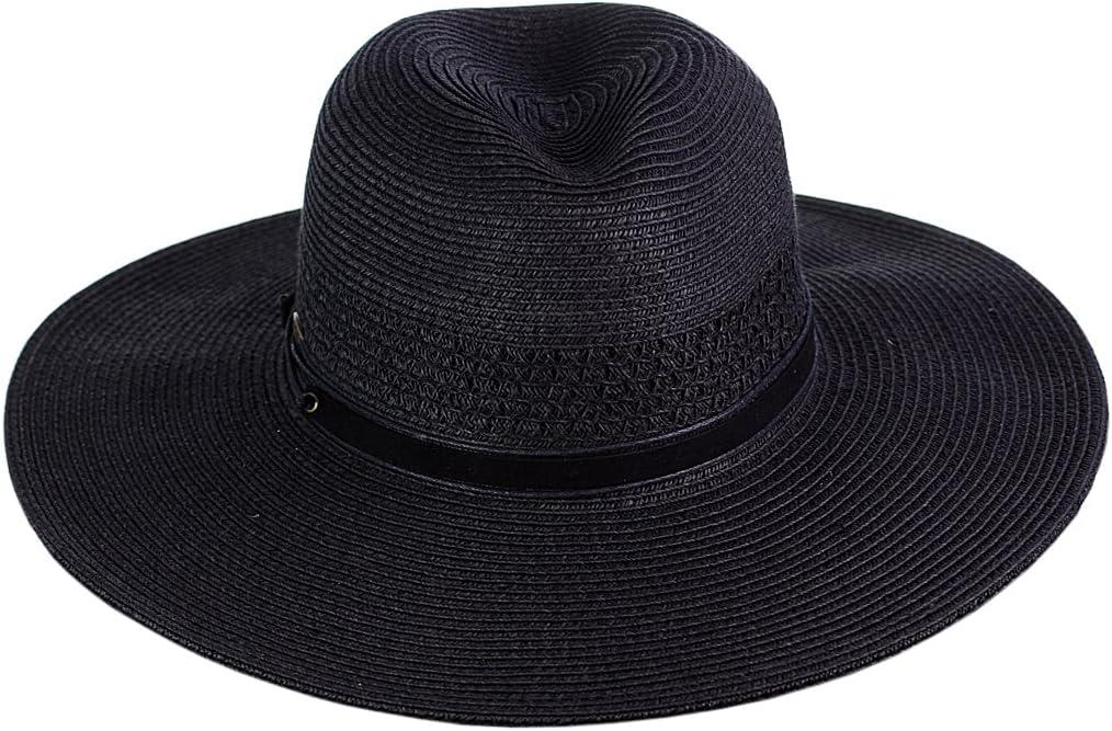 C.C Women's String & Faux Suede Band Wide Brim Weaved Panama Summer Sun Hat(Black)