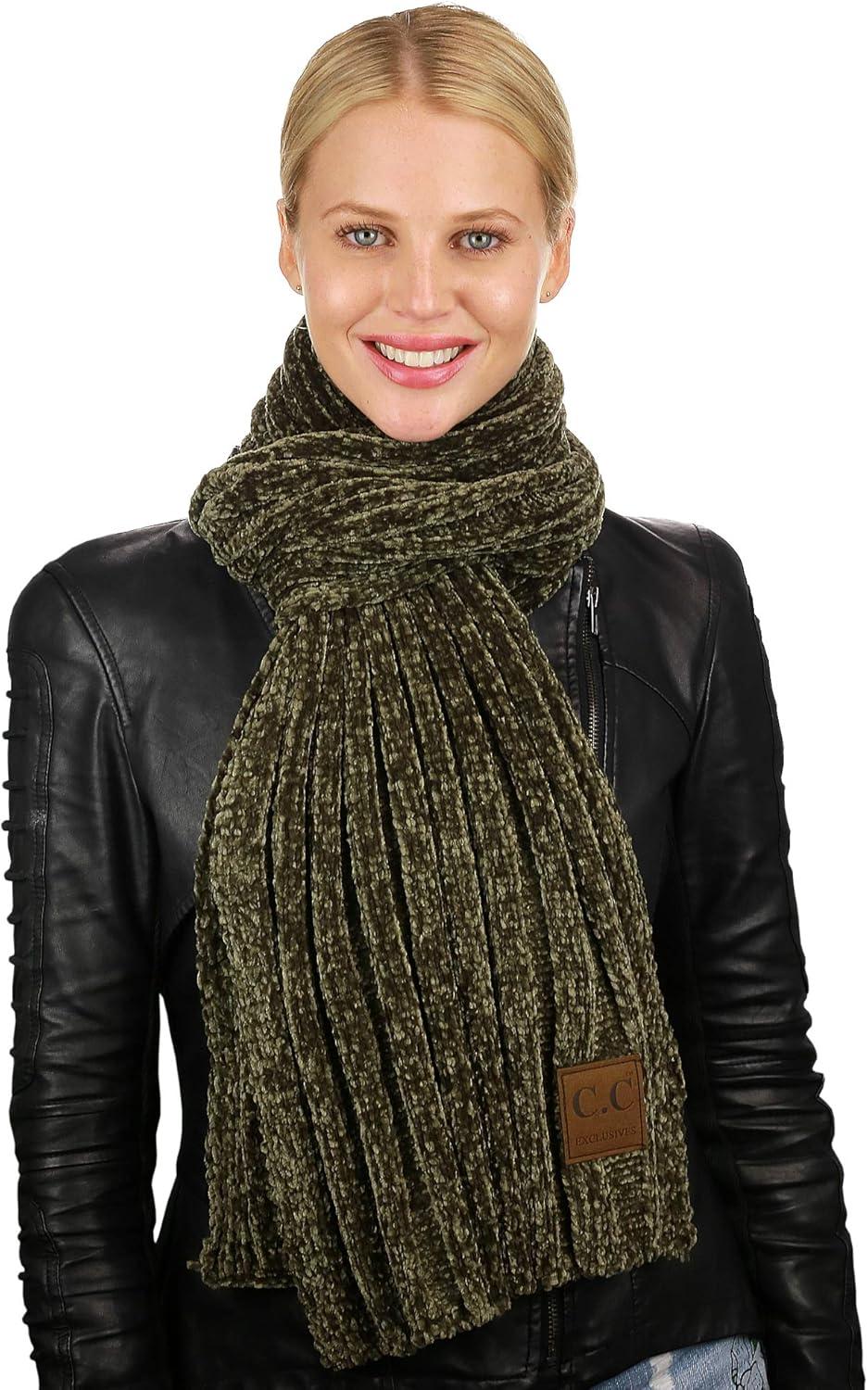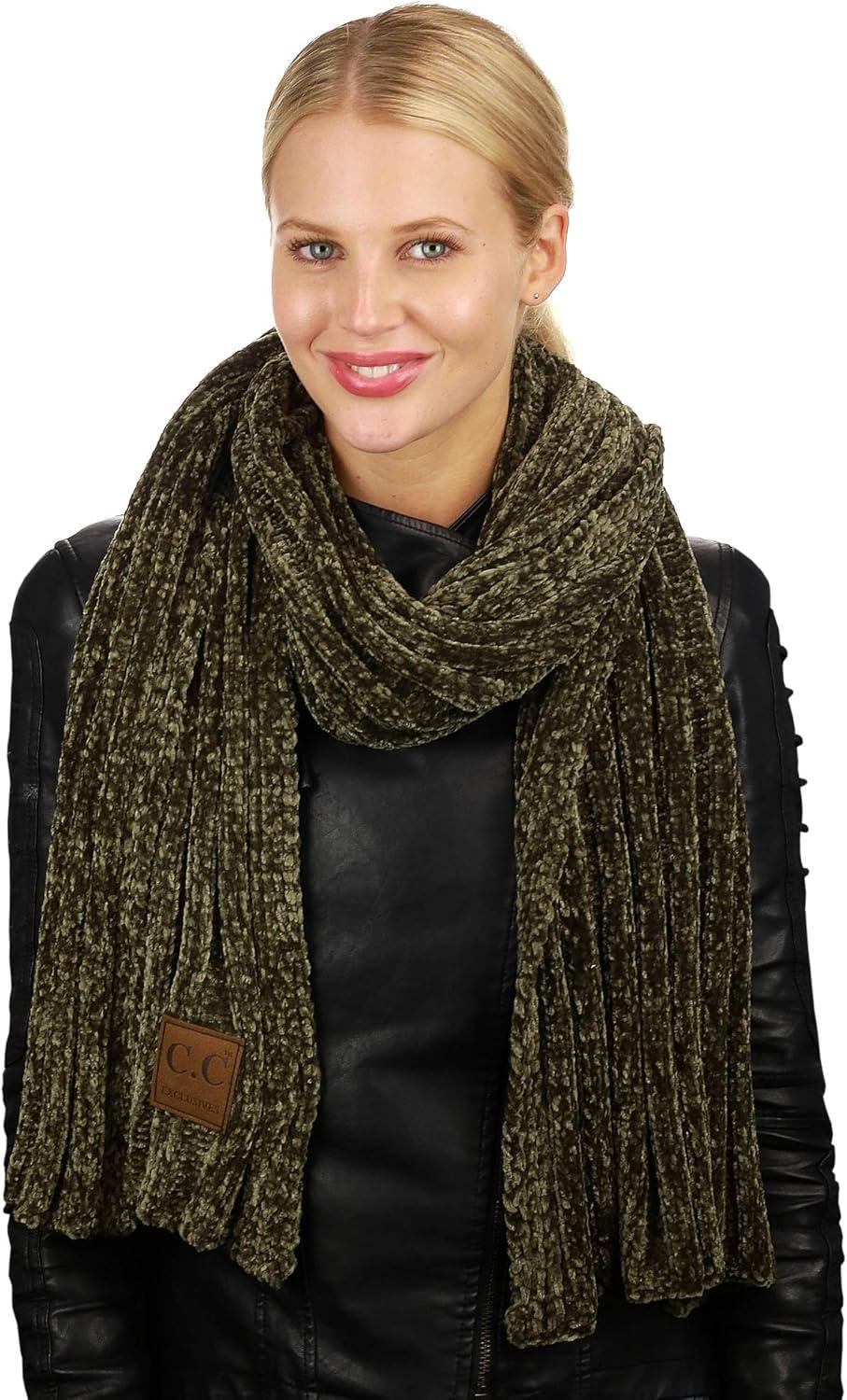 C.C Women’s Ultra Soft Chenille Ribbed Thick Warm Knit Shawl Wrap Scarf(New Olive)