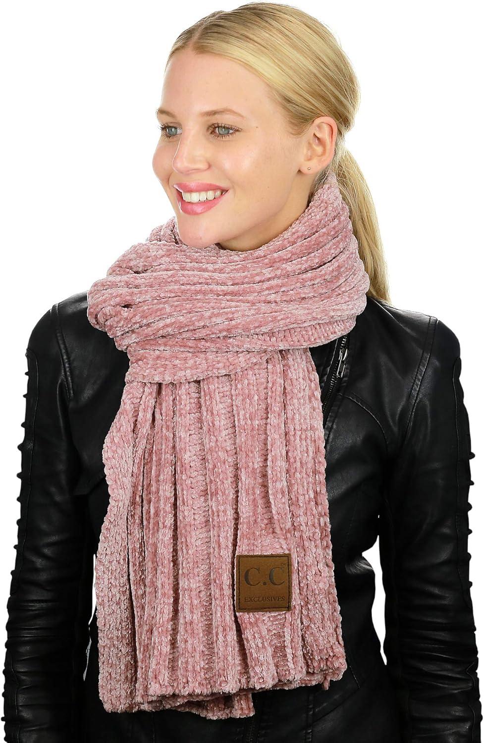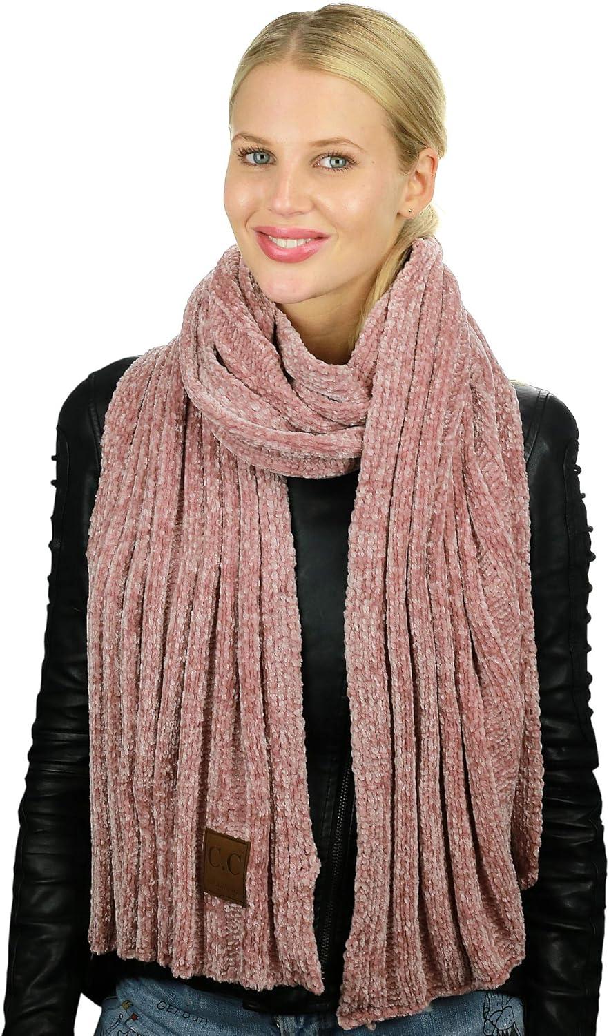 C.C Women's Ultra Soft Chenille Ribbed Thick Warm Knit Shawl Wrap Scarf(Rose)