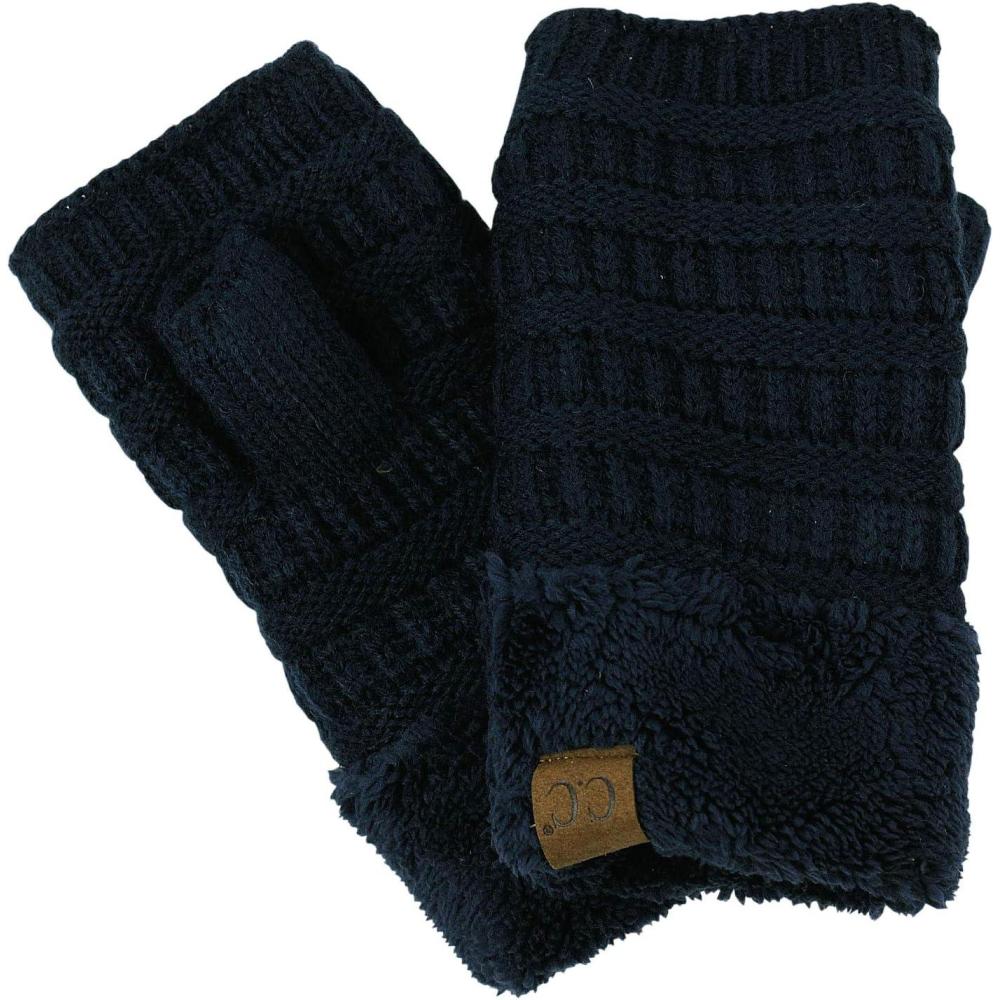 C.C Women's Warm Knit Fingerless Half Finger Fleece Lined Winter Gloves(Navy)