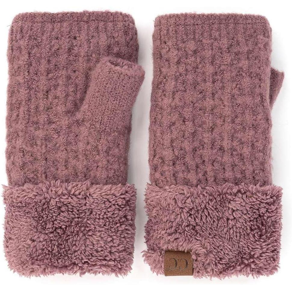 C.C Women’s Warm Knit Fingerless Half Finger Fleece Lined Winter Gloves(Soft Fuzzy Dusty Rose)
