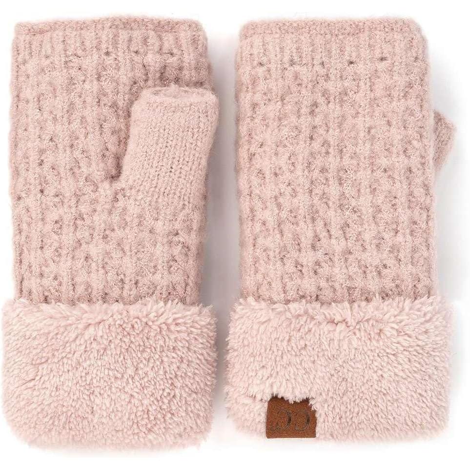 C.C Women's Warm Knit Fingerless Half Finger Fleece Lined Winter Gloves(Soft Fuzzy Dusty Rose)