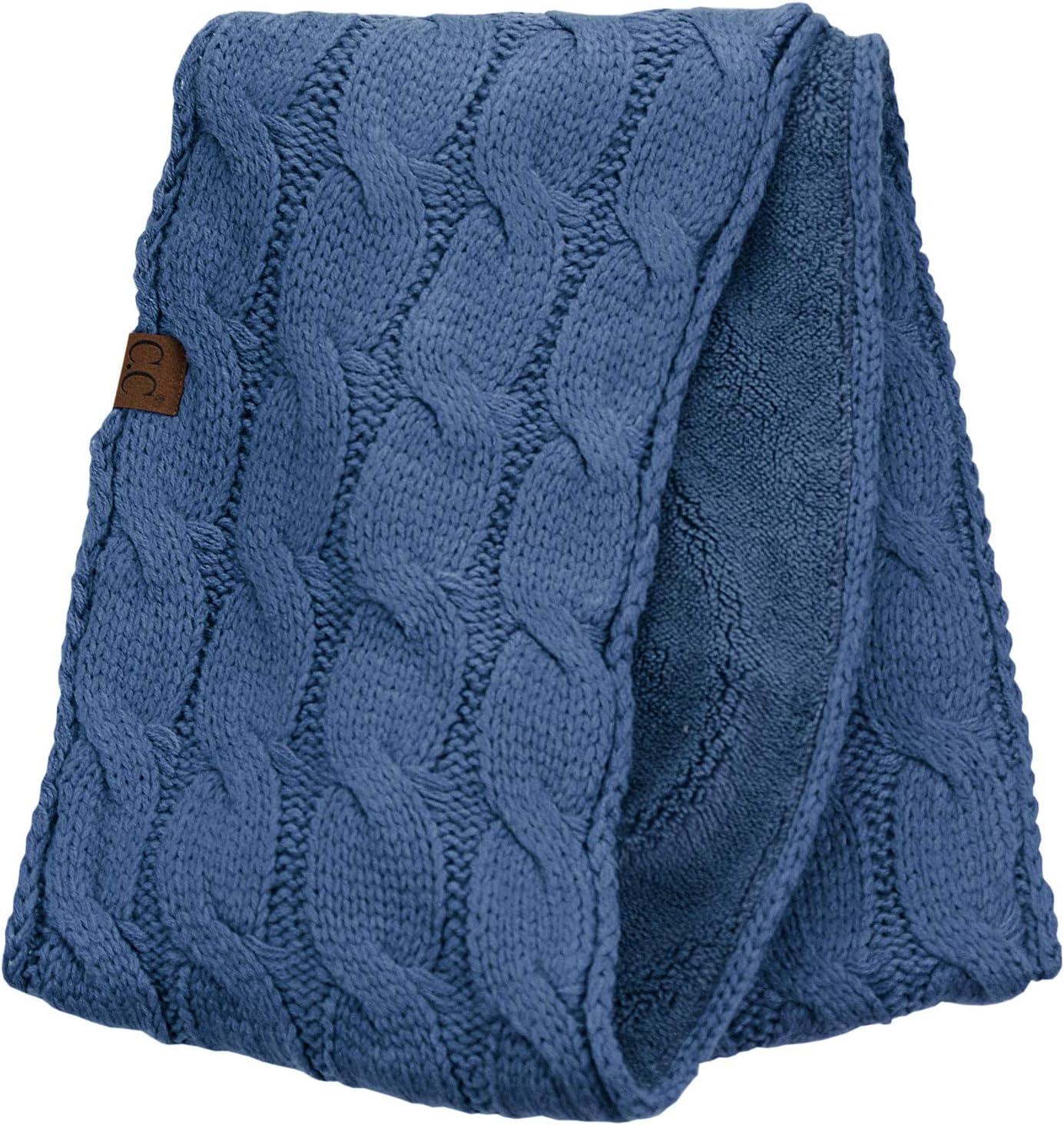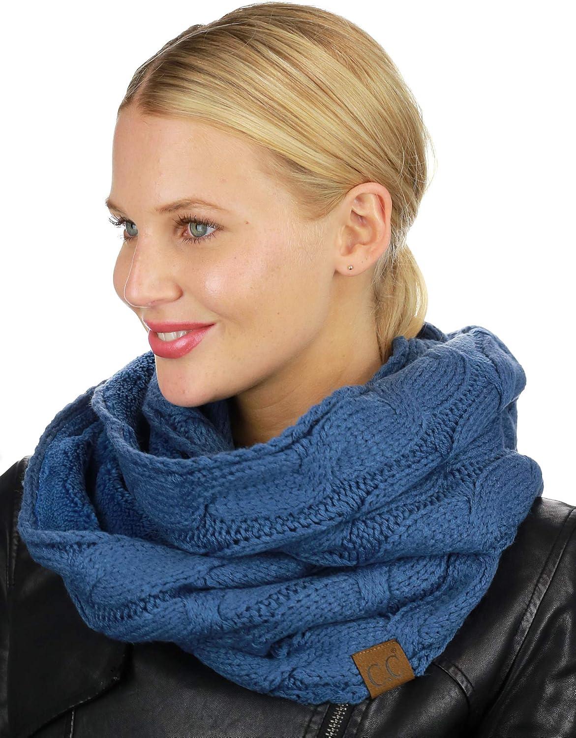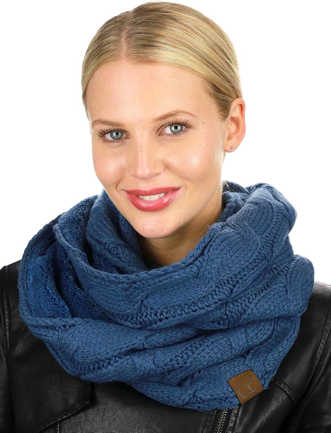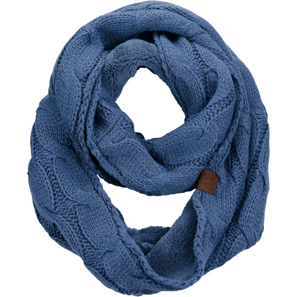 C.C Women’s Winter Cable Knit Sherpa Lined Warm Infinity Pullover Scarf(Dark Denim)