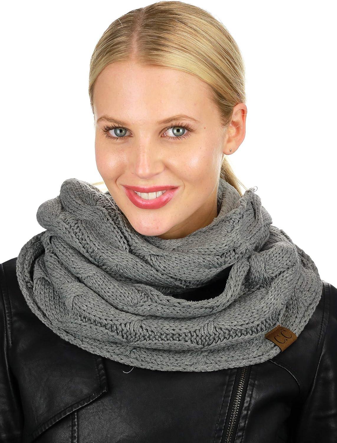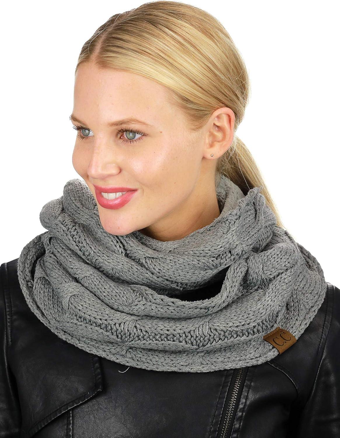 C.C Women’s Winter Cable Knit Sherpa Lined Warm Infinity Pullover Scarf(Light Melange Grey)