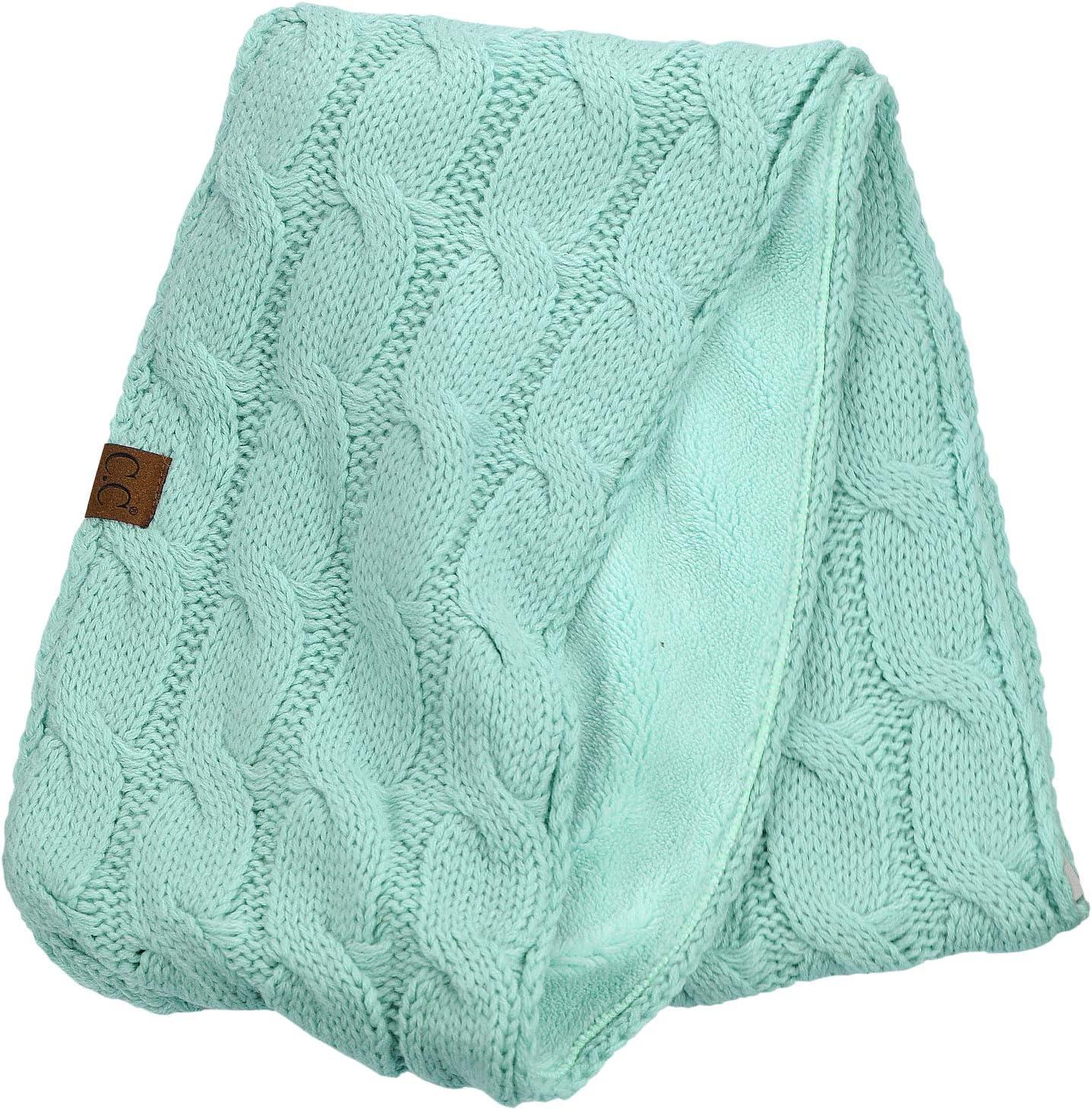 C.C Women's Winter Cable Knit Sherpa Lined Warm Infinity Pullover Scarf(Mint)