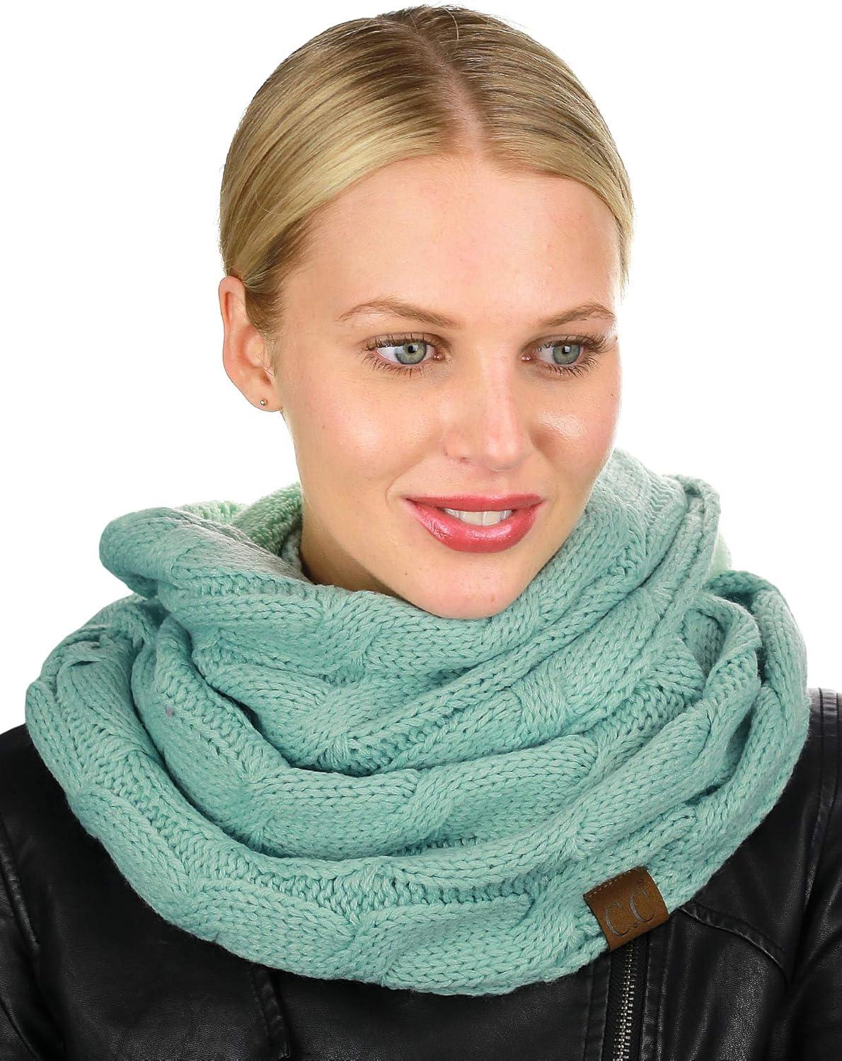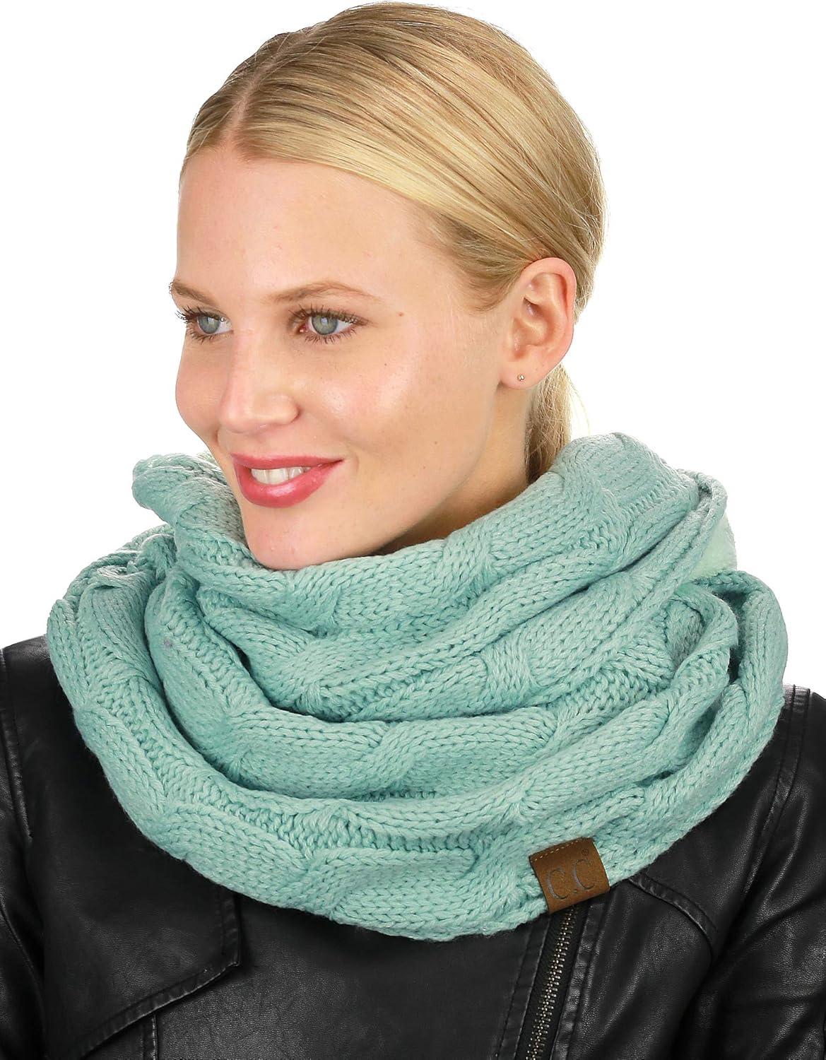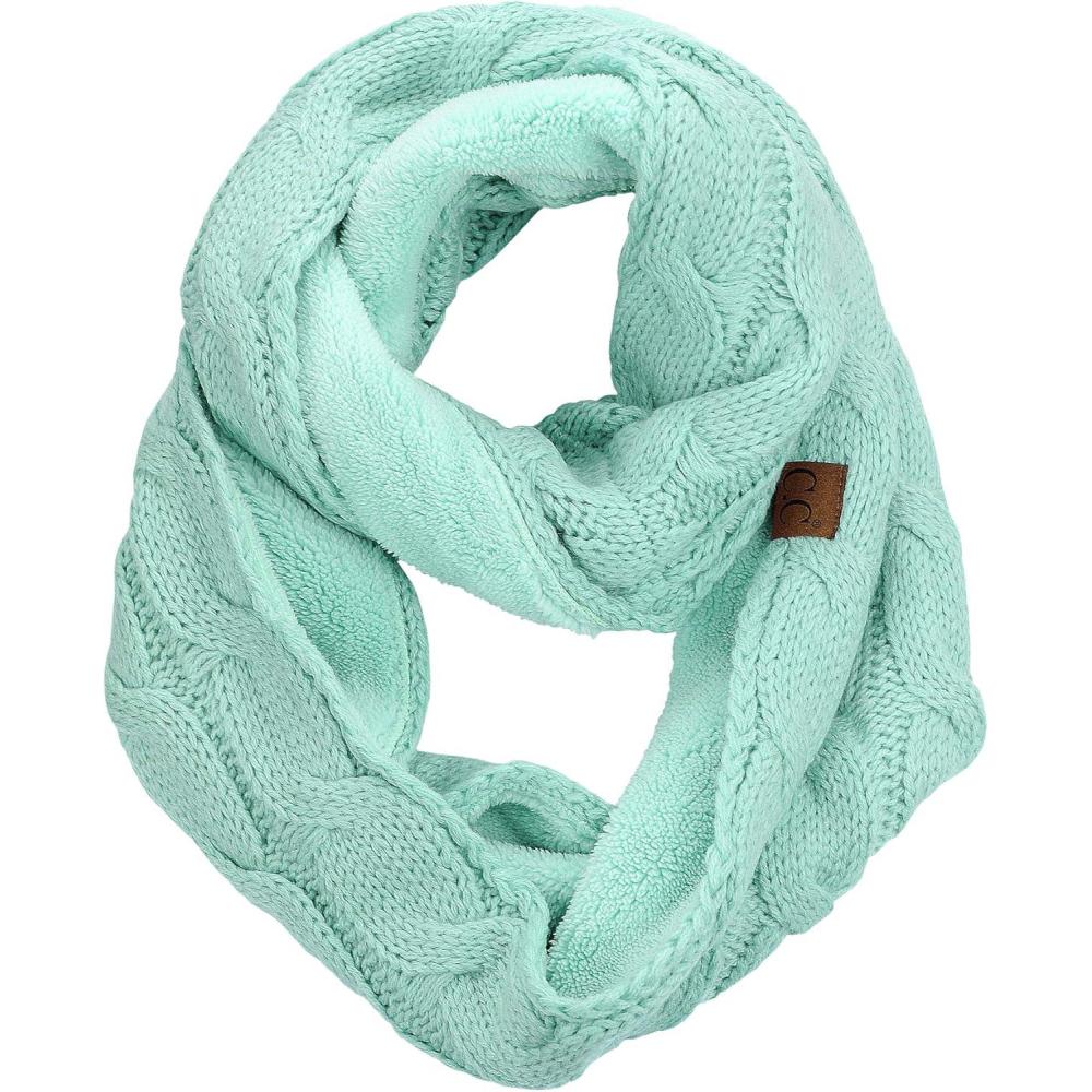 C.C Women’s Winter Cable Knit Sherpa Lined Warm Infinity Pullover Scarf(Mint)
