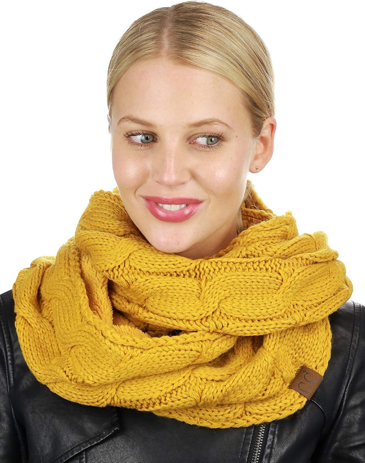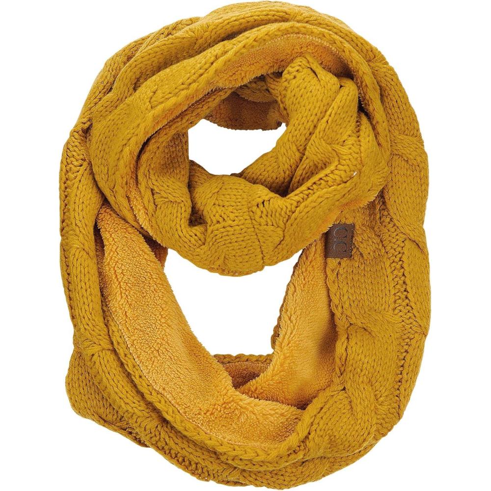 imageCC Womens Winter Cable Knit Sherpa Lined Warm Infinity Pullover ScarfMustard