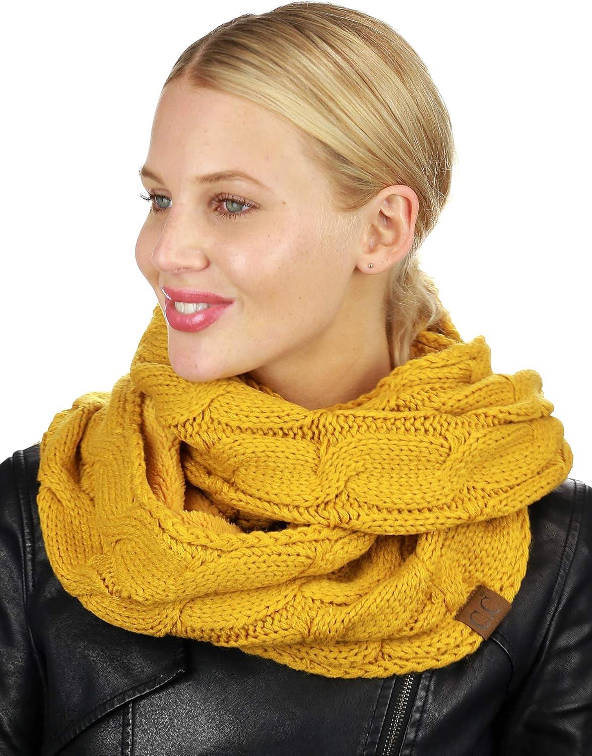 C.C Women's Winter Cable Knit Sherpa Lined Warm Infinity Pullover Scarf(Mustard)
