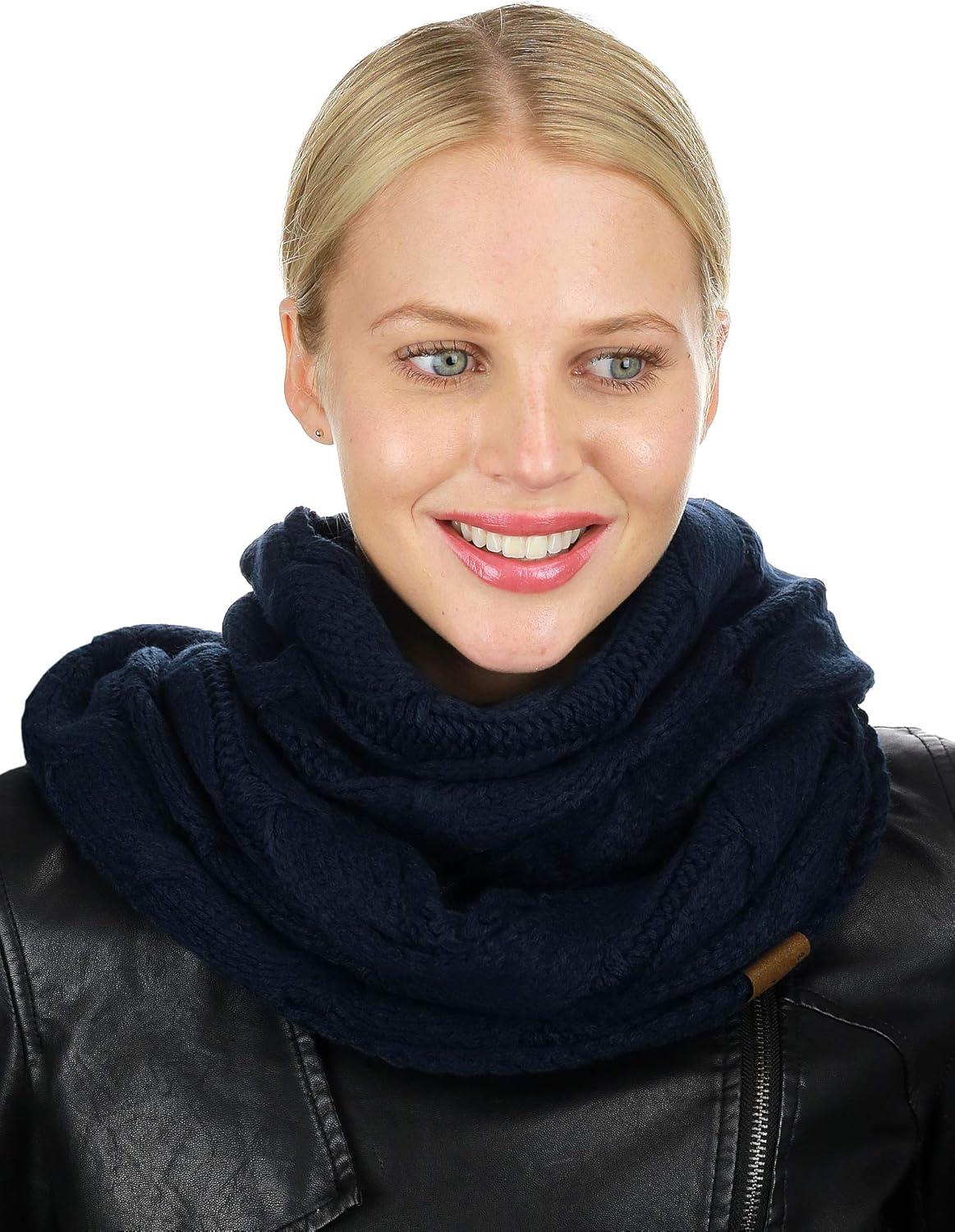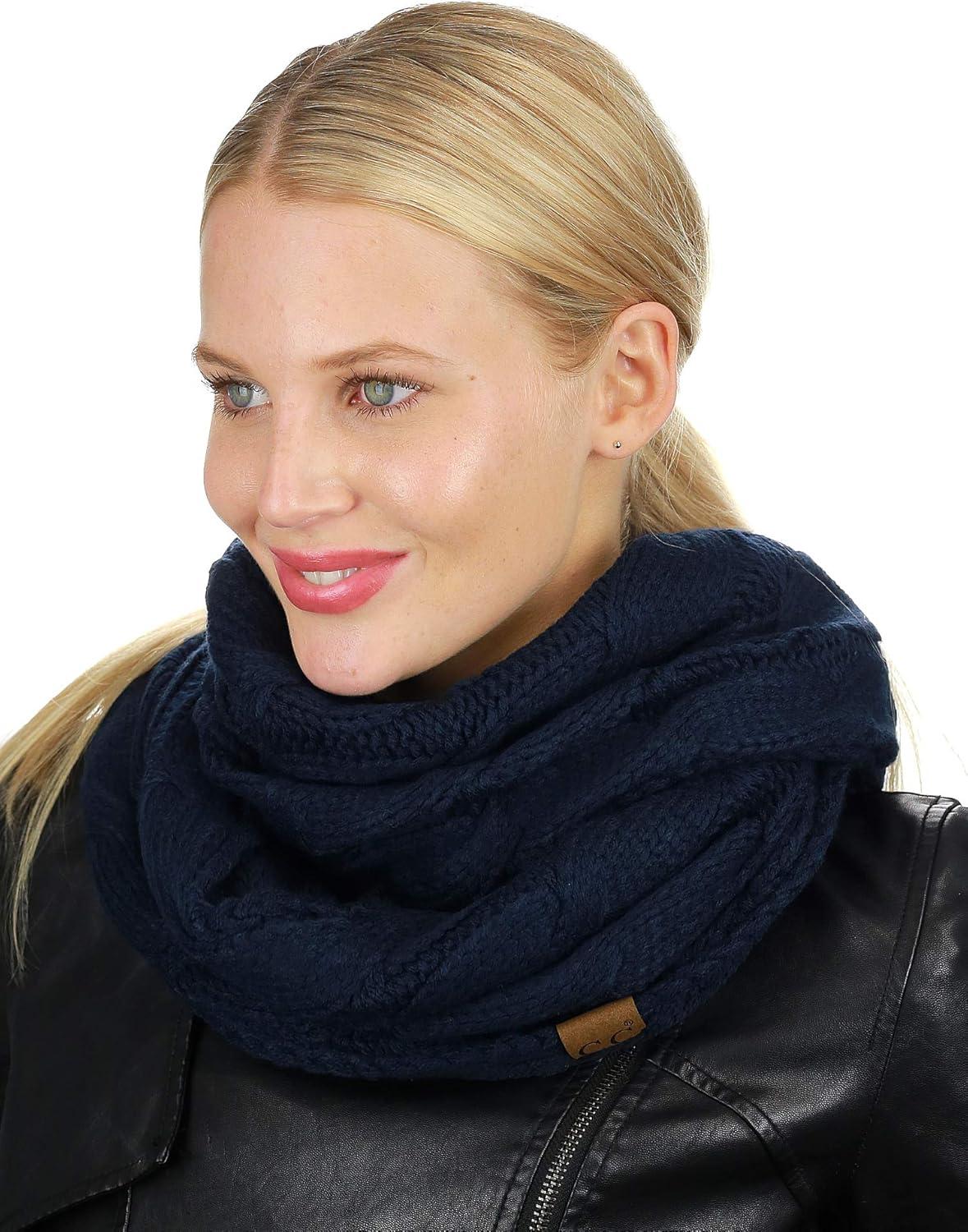 Don’t miss out on our limited-time offer: buy C.C Women’s Winter Cable Knit Sherpa Lined Warm Infinity Pullover Scarf(Navy), get {accessory} 50% off!